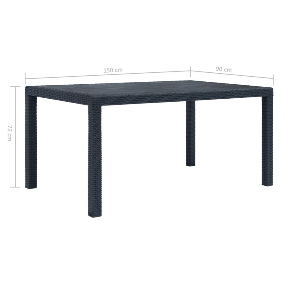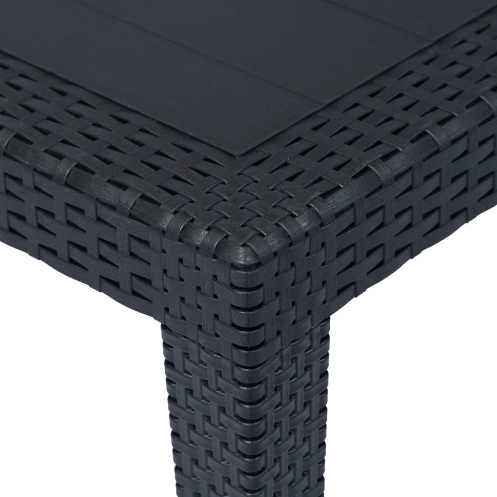 A mesa de jantar com aspeto de vime é feita de um plástico sólido, o que a torna durável e forte, bem como resistente às condições climatéricas e fácil de limpar. O seu design estilo vime adiciona um toque de charme natural ao seu espaço ao ar livre. A mesa de jardim é também leve e fácil de deslocar.