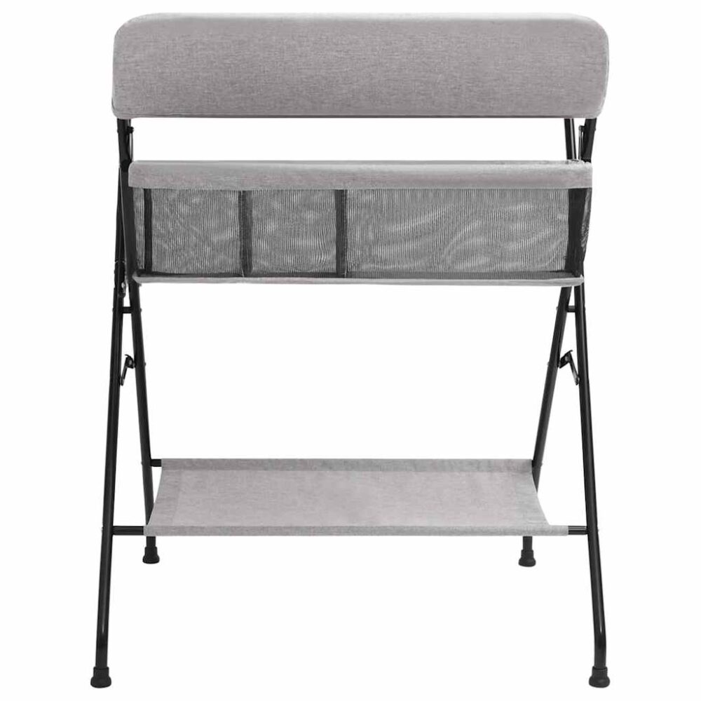 Com esta mesa muda-fraldas, o seu bebé estará seguro e confortável na altura de trocar a fralda. Esta mesa muda-fraldas é robusta e durável. As paredes laterais garantem que o bebé não cai. O tampo muda-fraldas apresenta compartimentos laterais para arrumação e facilita o acesso aos artigos do bebé. Após mudar a fralda, pode dobrá-la e guardá-la para poupar espaço, portanto a mesa muda-fraldas é perfeita para utilização em viagem ou em casa. Existe ainda uma prateleira na parte inferior para acomodar objetos tais como óleo para bebé, fraldas adicionais, etc. Atenção NÃO deixe a criança sem vigilância. Peso máximo do utilizador: 11 kg. Recomendado para crianças entre os 0 e os 12 meses de idade. Não permita que crianças subam ou brinquem no trocador.Aviso NÃO deixe a criança sem vigilância. Não permita que as crianças trepem ou brinquem na mesa muda-fraldas. GPSR