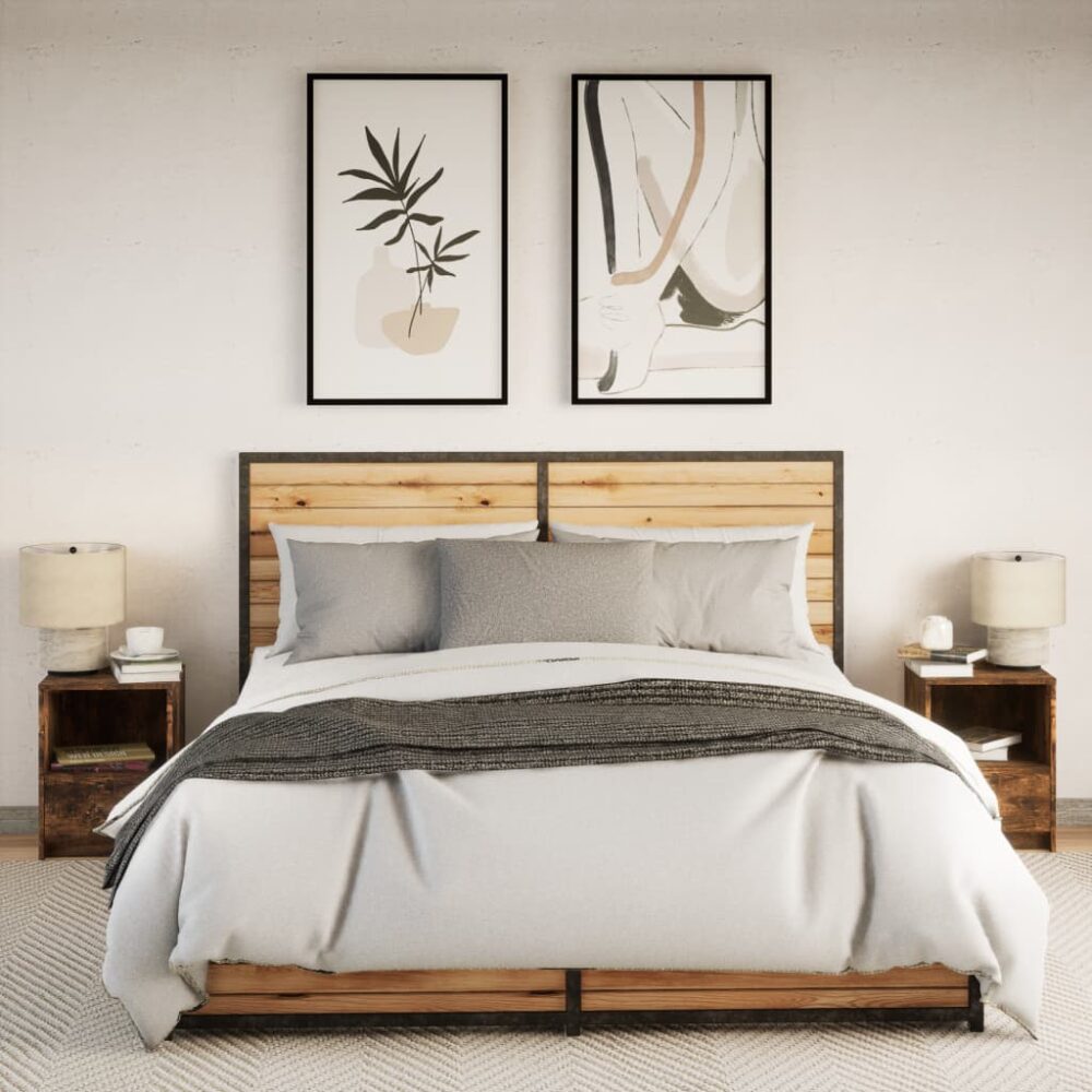 Mesas cabeceira c/ LEDs 2 pcs derivados madeira carvalho fumado - PORTES GRÁTIS