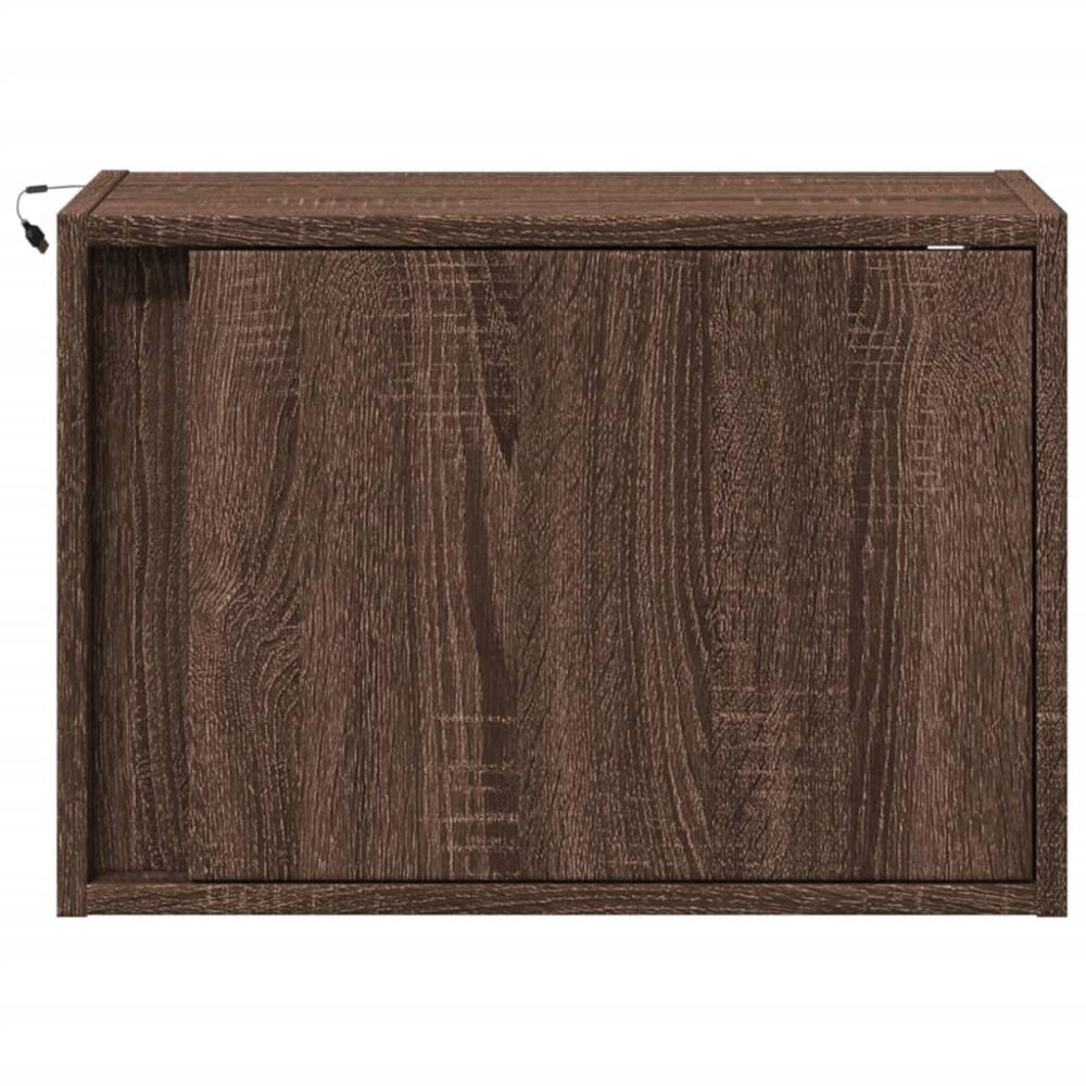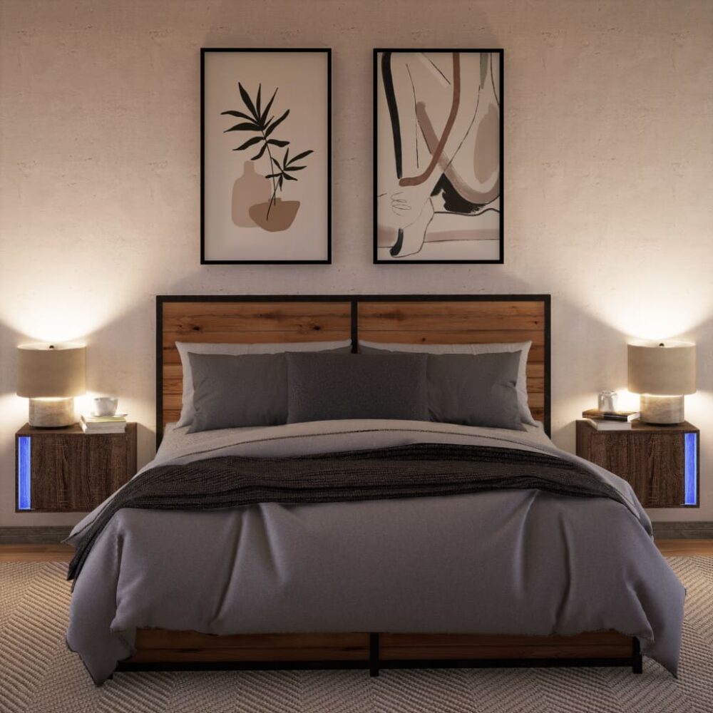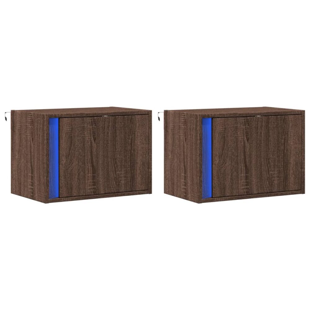 Mesas cabeceira de parede c/ luzes LED 2 pcs carvalho castanho - PORTES GRÁTIS