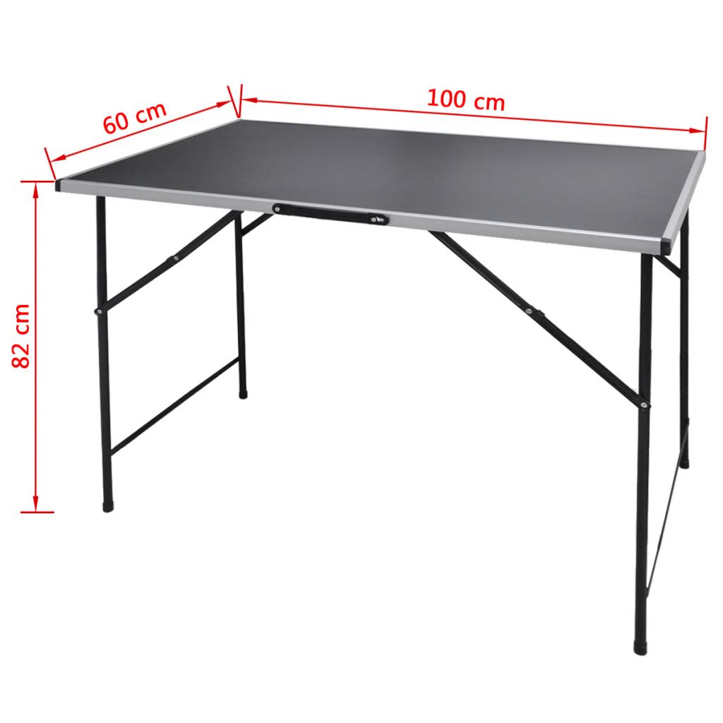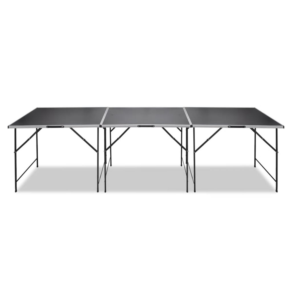 Cada uma das nossas 3 mesas de campismo/trabalho tem uma estrutura feita de alumínio forte e leve e um tampo em MDF preto fácil de limpar. Apoiada por pernas de ferro forte, o conjunto de mesas é muito forte e estável. Estas 3 mesas podem ser conectadas através dos ganchos incluídos. Todas as 3 mesas são dobráveis para portabilidade e podem ser facilmente guardadas quando não estão em uso.