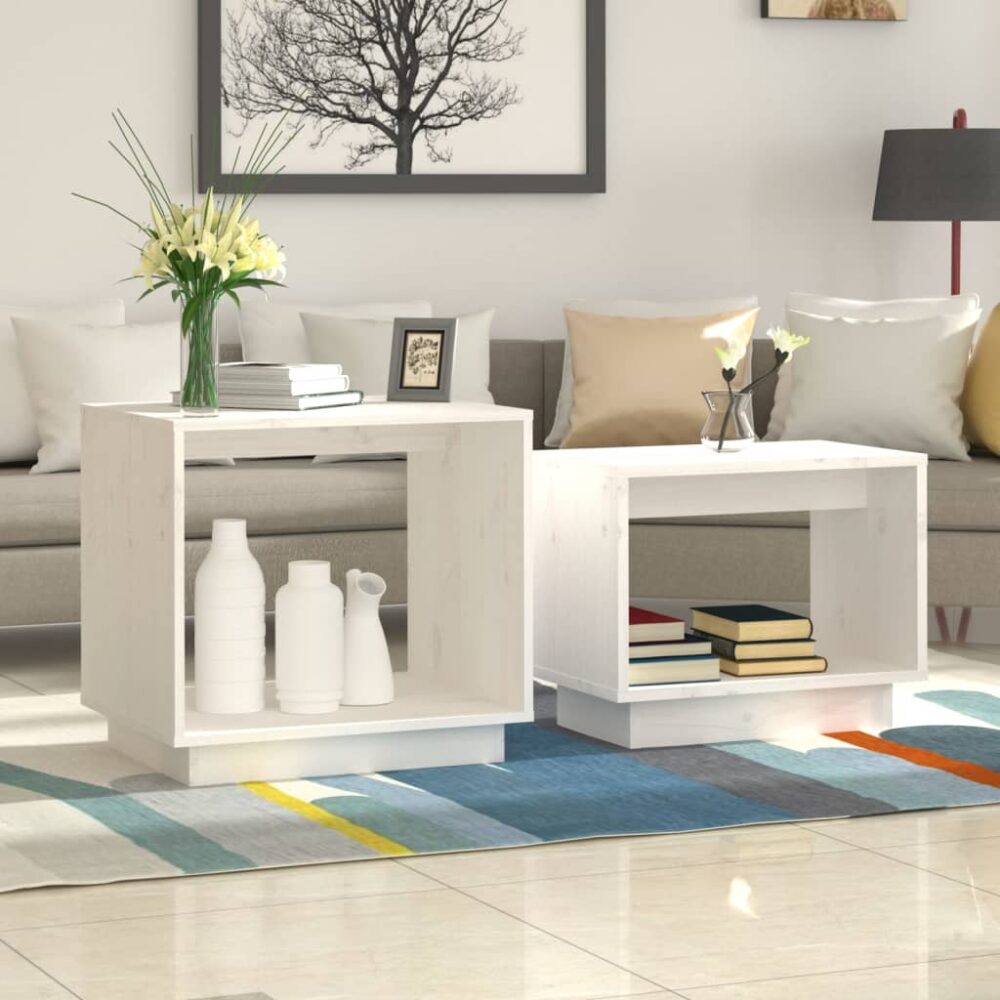 Mesas de centro de encastrar 2 pcs pinho maciço branco - PORTES GRÁTIS