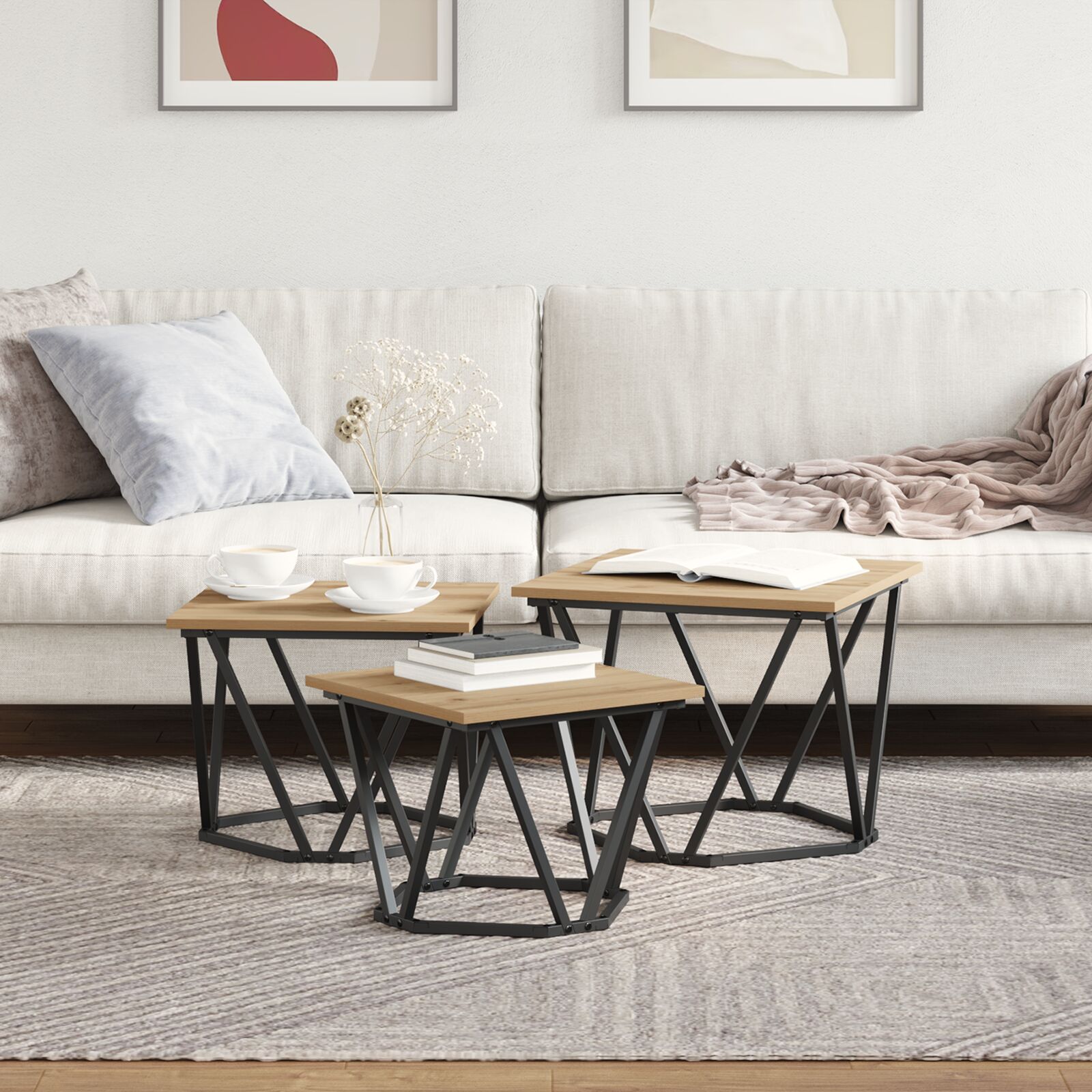 A Mesa de Centro Retangular Elegante uma pea prtica que se adapta muito bem ao espao. Com a superfcie lisa em madeira de carvalho macia e uma estrutura metlica resistente, ideal para o dia a dia, seja para um caf com amigos ou alguns petiscos durante uma noite de cinema. Com dimenses de 60cm por 60cm, do tamanho certo para bebidas e lanches, mantendo uma forma retangular estilosa. Perfeita para apartamentos modernos, esta mesa reflete as tendncias atuais do estilo contemporneo, oferecendo bastante espao para revistas, livros ou o que mais se desejar. Adicionar esta mesa sala melhora tanto a praticidade como o ambiente, tornando-o um lugar acolhedor para relaxar e socializar.