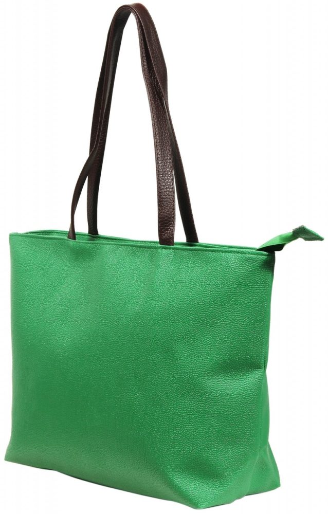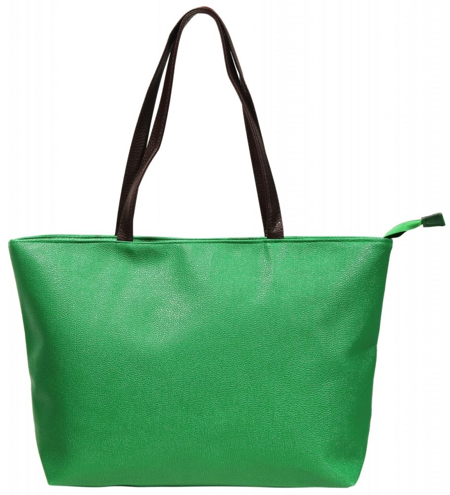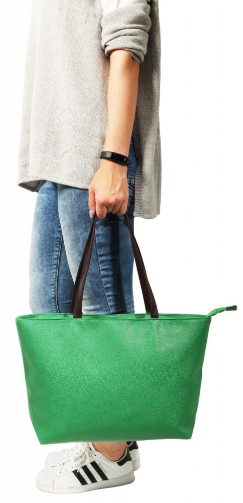 A bolsa é uma bolsa feminina feita de pele sintética. Toda a superfície tem estrutura lisa e está disponível nas cores rosa e verde. A bolsa possui duas alças de transporte e um grande compartimento principal que pode ser aberto com fecho. No interior há um compartimento interno estreito que pode ser fechado com fecho atrás das costas. As dimensões da bolsa são 29 cm de comprimento, 48 cm de largura e 13 cm de altura quando vazia.