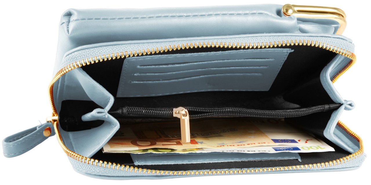A bolsa de ombro para telemóvel com carteira é feita de pele sintética e está disponível em várias cores da moda. É ideal para muitas atividades de lazer e pode substituir o incômodo de carregar uma bolsa grande. A bolsa tiracolo não só impressiona pelo seu design minimalista, mas também pela prática opção de armazenamento para todos os itens importantes. Apesar do seu tamanho compacto, oferece espaço de armazenamento suficiente para guardar tudo o que é importante de forma clara e segura. Possui carteira que abre e fecha com fecho de correr. Contém 6 compartimentos para cartões de crédito, 2 compartimentos para notas e 1 compartimento com fecho para pequenos trocos. A capa para telemóvel para smartphones do tamanho de um iPhone 12 Pro Max ou menor pode ser facilmente aberta e fechada separadamente usando um fecho de clipe clássico.