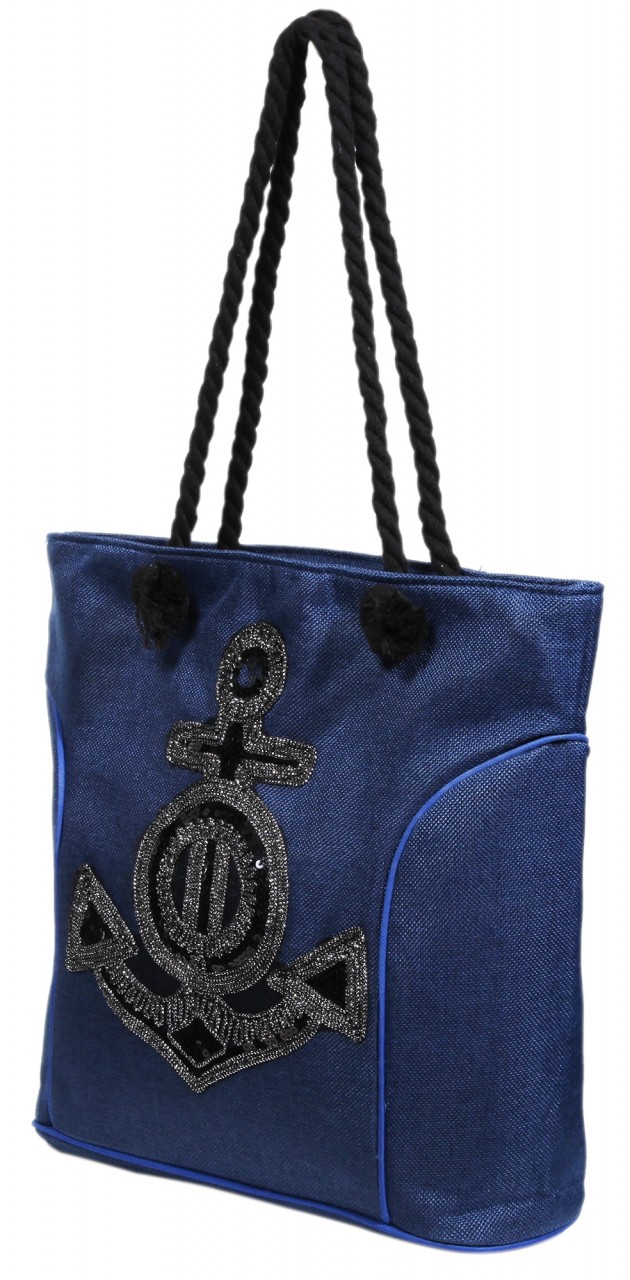 A bolsa de praia marítima com alças de cordão é feita de tecido e decorada com um motivo de âncora decorado com lantejoulas. A bolsa de verão oferece amplo espaço de armazenamento, possui um grande compartimento interno com fecho e dois compartimentos para telemóvel no interior. A bolsa não é apenas uma bolsa de praia! É ideal para compras a granel, para férias curtas ou simplesmente como acessório de moda. O tamanho da bolsa é 34,5 cm de comprimento, 43 cm de largura e 0,7 cm de espessura.