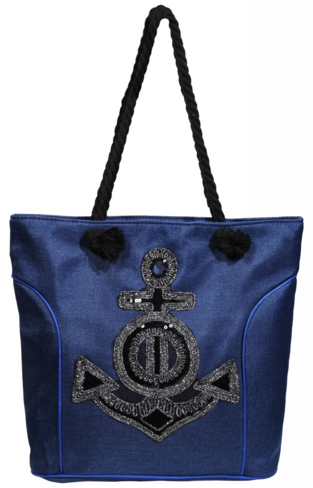 A bolsa de praia marítima com alças de cordão é feita de tecido e decorada com um motivo de âncora decorado com lantejoulas. A bolsa de verão oferece amplo espaço de armazenamento, possui um grande compartimento interno com fecho e dois compartimentos para telemóvel no interior. A bolsa não é apenas uma bolsa de praia! É ideal para compras a granel, para férias curtas ou simplesmente como acessório de moda. O tamanho da bolsa é 34,5 cm de comprimento, 43 cm de largura e 0,7 cm de espessura.