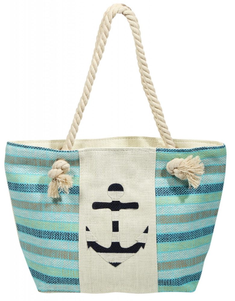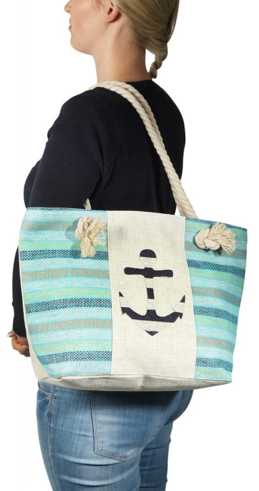 A bolsa de praia marítima com alças de cordão é feita de fibra liberiana e decorada com motivo de âncora e lindas combinações de cores. A bolsa de verão oferece amplo espaço de armazenamento e possui um grande compartimento interno onde todas as coisas importantes podem ser armazenadas e protegidas com um fecho. Há também outro compartimento para telemóvel dentro. É o companheiro perfeito para um dia de praia, mas também para outras atividades de lazer. As dimensões da bolsa são 30 cm de comprimento, 44 ​​cm de largura e 1,0 cm de espessura quando vazia.