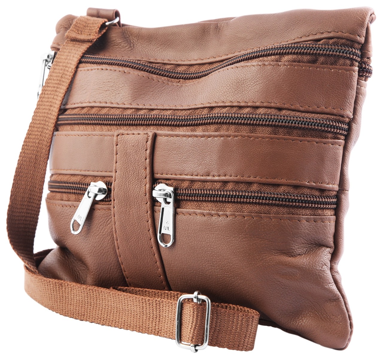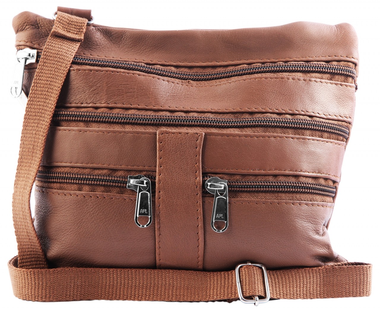 A bolsa feminina da marca Steinmeister é confeccionada em couro genuíno e possui superfície lisa. A bolsa possui uma longa alça de transporte que pode ser estendida até um comprimento máximo de 126 cm. A alça de transporte é fixada na bolsa em ambos os lados com 2 ilhós de metal. Existem quatro compartimentos na frente da bolsa, todos eles podem ser abertos com zíper. Existem dois compartimentos grandes na parte superior e dois compartimentos menores dispostos um ao lado do outro na parte inferior da bolsa. Há também um zíper na parte de trás da bolsa feminina da moda, atrás do qual há um grande compartimento externo. No geral, a bolsa tem 21 cm de largura, 19 cm de comprimento e 1 cm de profundidade. A particularidade desta bolsa feminina é que ela é preenchida exclusivamente através de bolsos externos e não possui um grande compartimento principal.
