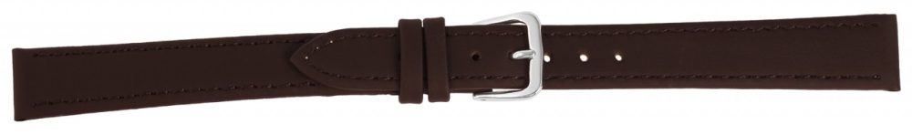 A pulseira de relógio castanho escuro feita de couro genuíno está disponível em larguras de 10 mm – 24 mm e em uma embalagem de seis peças. Tem uma superfície fina mate e acabamento com uma costura castanha escura. A espessura do material é de 2 mm. A pulseira de reposição XL tem um comprimento total entre 21,5 cm e 24 cm, dependendo da largura da alça. A alça do fecho é 2 mm mais estreita que a largura da alça porque a faixa é estreitamente estreita. A pulseira de substituição pode ser aberta e fechada com uma fivela prateada altamente polida. O acabamento brilhante em combinação com a pulseira de couro fosco realça o belo design da pulseira do relógio e garante que ela possa ser colocada e retirada com rapidez e facilidade.