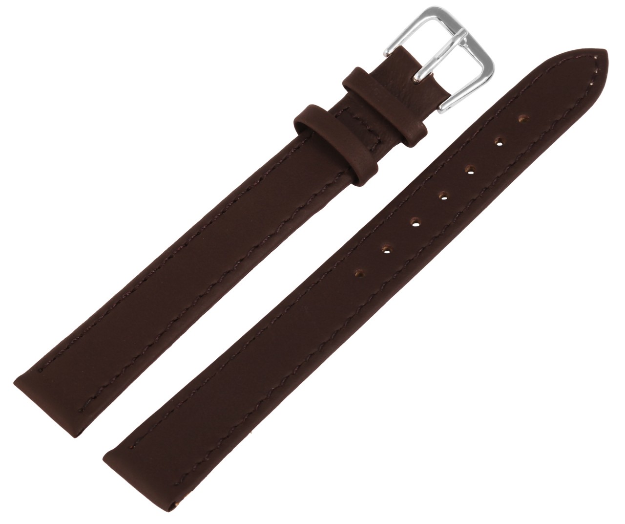 A pulseira de relógio castanho escuro feita de couro genuíno está disponível em larguras de 10 mm – 24 mm e em uma embalagem de seis peças. Tem uma superfície fina mate e acabamento com uma costura castanha escura. A espessura do material é de 2 mm. A pulseira de reposição XL tem um comprimento total entre 21,5 cm e 24 cm, dependendo da largura da alça. A alça do fecho é 2 mm mais estreita que a largura da alça porque a faixa é estreitamente estreita. A pulseira de substituição pode ser aberta e fechada com uma fivela prateada altamente polida. O acabamento brilhante em combinação com a pulseira de couro fosco realça o belo design da pulseira do relógio e garante que ela possa ser colocada e retirada com rapidez e facilidade.