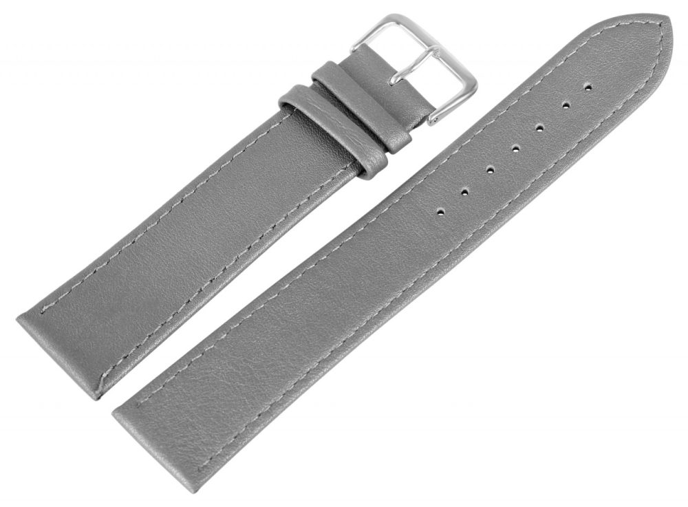 A pulseira de relógio cinza claro feita de couro genuíno está disponível em larguras de 10 mm - 24 mm e em uma embalagem de seis peças. Tem uma superfície lisa e acabamento com uma fina costura cinza. A espessura do material é de 2 mm. A pulseira de substituição XL tem um comprimento total entre 21,5 cm e 24 cm, dependendo da largura da alça. A alça do fecho é 2 mm mais estreita que a largura da alça porque a faixa é estreitamente estreita. A pulseira de substituição pode ser aberta e fechada com uma fivela prateada altamente polida. O acabamento brilhante em combinação com a pulseira de couro liso sublinha o belo design da pulseira…