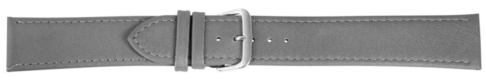 A pulseira de relógio cinza claro feita de couro genuíno está disponível em larguras de 10 mm – 24 mm e em uma embalagem de seis peças. Tem uma superfície lisa e acabamento com uma fina costura cinza. A espessura do material é de 2 mm. A pulseira de substituição XL tem um comprimento total entre 21,5 cm e 24 cm, dependendo da largura da alça. A alça do fecho é 2 mm mais estreita que a largura da alça porque a faixa é estreitamente estreita. A pulseira de substituição pode ser aberta e fechada com uma fivela prateada altamente polida. O acabamento brilhante em combinação com a pulseira de couro liso sublinha o belo design da pulseira do relógio e garante uma colocação e retirada rápida e fácil.