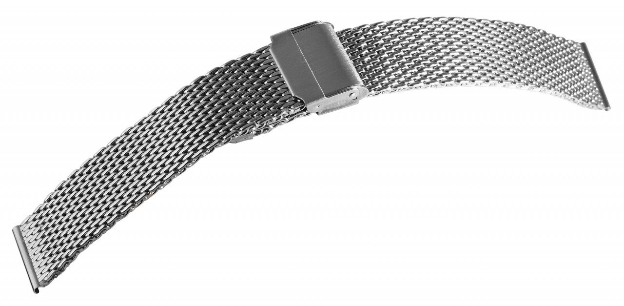 A pulseira do relógio milanês prateado é feita de aço inoxidável e pode ser aberta e fechada com um fecho de gancho em aço inoxidável prateado. A pulseira de substituição é muito confortável de usar graças ao seu design especial e pode ser perfeitamente ajustada a qualquer pulso graças ao ajuste fino. O comprimento total da pulseira do relógio é de 20 cm. A pulseira milanesa está disponível em larguras de 18 mm, 20 mm, 22 mm e 24 mm. A alça é reta e, portanto, compatível com todos os relógios. A pulseira milanesa torna cada relógio um destaque visual.