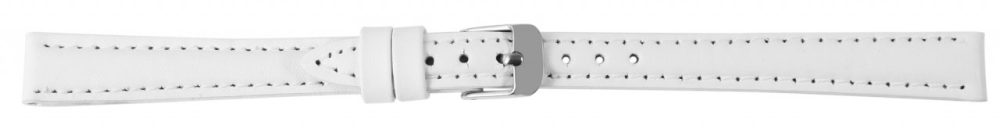 A pulseira branca feita de couro genuíno está disponível em larguras de 10 mm a 24 mm. Tem uma superfície lisa, é levemente acolchoada e tem uma fina costura branca. A espessura do material é de 3,5 mm. A pulseira de substituição tem um comprimento total entre 20,5 cm e 22 cm, que depende da largura da saliência. A alça do fecho é 2 mm mais estreita que a largura da alça porque a faixa é estreitamente estreita. A pulseira pode ser aberta e fechada com uma fivela prateada altamente polida. O acabamento brilhante em combinação com a pulseira de couro liso sublinha o belo design da pulseira do relógio e garante uma colocação e retirada rápida e fácil. Você também pode dar um novo visual ao seu relógio rapidamente com esta pulseira.
