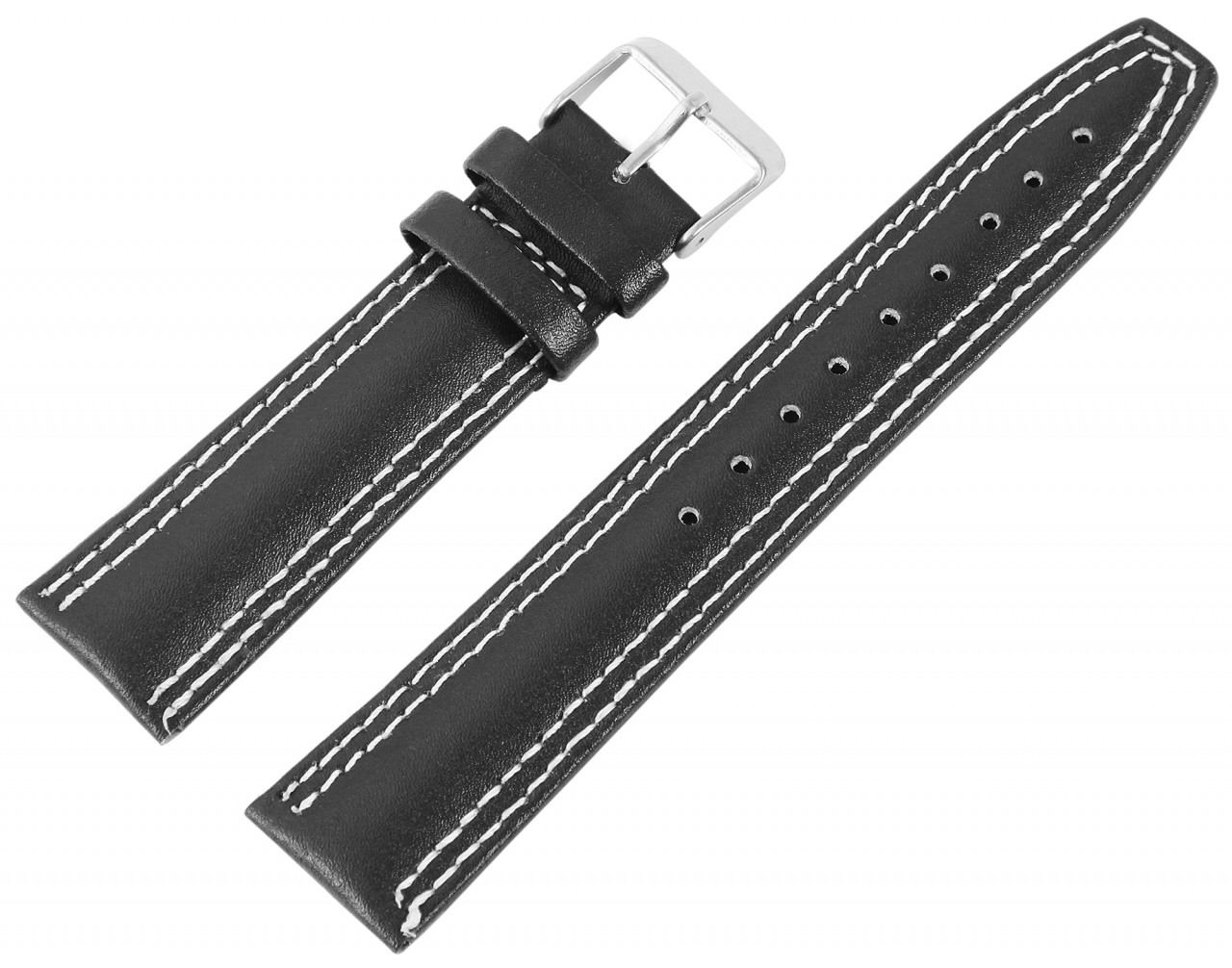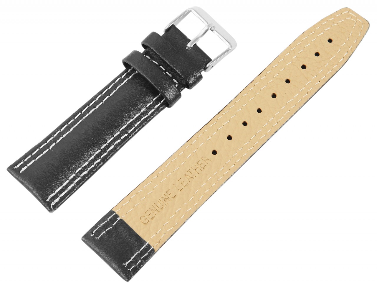 A pulseira preta do relógio é feita de couro genuíno e tem uma largura de 12 mm. A alça do fecho é 4 mm mais estreita que a largura da alça porque a faixa é estreitamente estreita. A pulseira tem superfície lisa, com granulação sutil e acabamento com fina costura preta que garante boa durabilidade e estabilidade. O comprimento total é de 17,5 cm e a espessura do material é de 2 mm. O comprimento consiste na parte do fecho com 7,5 cm de comprimento e na parte do furo com 10 cm de comprimento. A pulseira também pode ser aberta e fechada com uma fivela dourada. A pulseira do relógio realça a aparência do seu relógio e dá-lhe uma aparência nova.