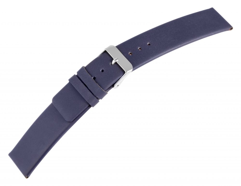 A pulseira do relógio azul escuro é feita de couro genuíno e está disponível em larguras de 14 mm, 16 mm, 18 mm, 20 mm e 22 mm. O comprimento total da banda está entre 20,5 cm e 22 cm e a espessura do material é de 2 mm. O comprimento depende da largura do talão. A pulseira de reposição pode ser aberta e fechada com uma fivela prateada altamente polida. O acabamento brilhante em combinação com a pulseira de couro levemente fosca sublinha o belo design da pulseira do relógio e garante que ela possa ser colocada e retirada com rapidez e facilidade.
