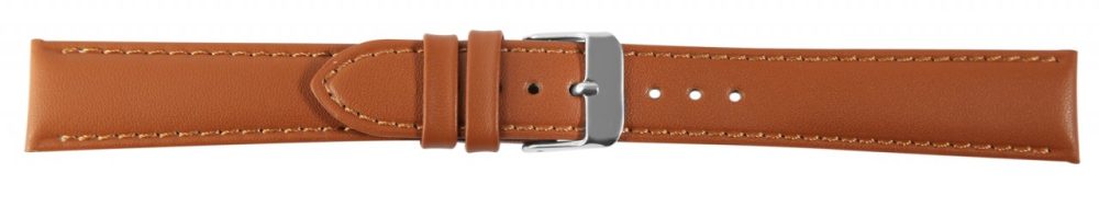 A pulseira castanha feita de couro genuíno está disponível em larguras de 10 mm a 24 mm. Tem uma superfície lisa, é levemente acolchoada e tem uma fina costura castanha. A espessura do material é de 3,5 mm. A pulseira de substituição tem um comprimento total entre 21 cm e 22 cm, que depende da largura da saliência. A alça do fecho é 2 mm mais estreita que a largura da alça porque a faixa é estreitamente estreita. A pulseira pode ser aberta e fechada com uma fivela prateada altamente polida. O acabamento brilhante em combinação com a pulseira de couro liso sublinha o belo design da pulseira do relógio e garante uma colocação e retirada rápida e fácil. Você também pode dar um novo visual ao seu relógio rapidamente com esta pulseira.