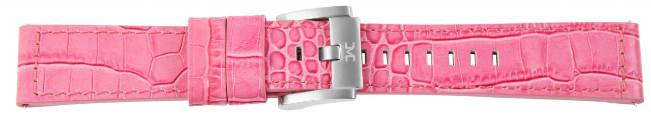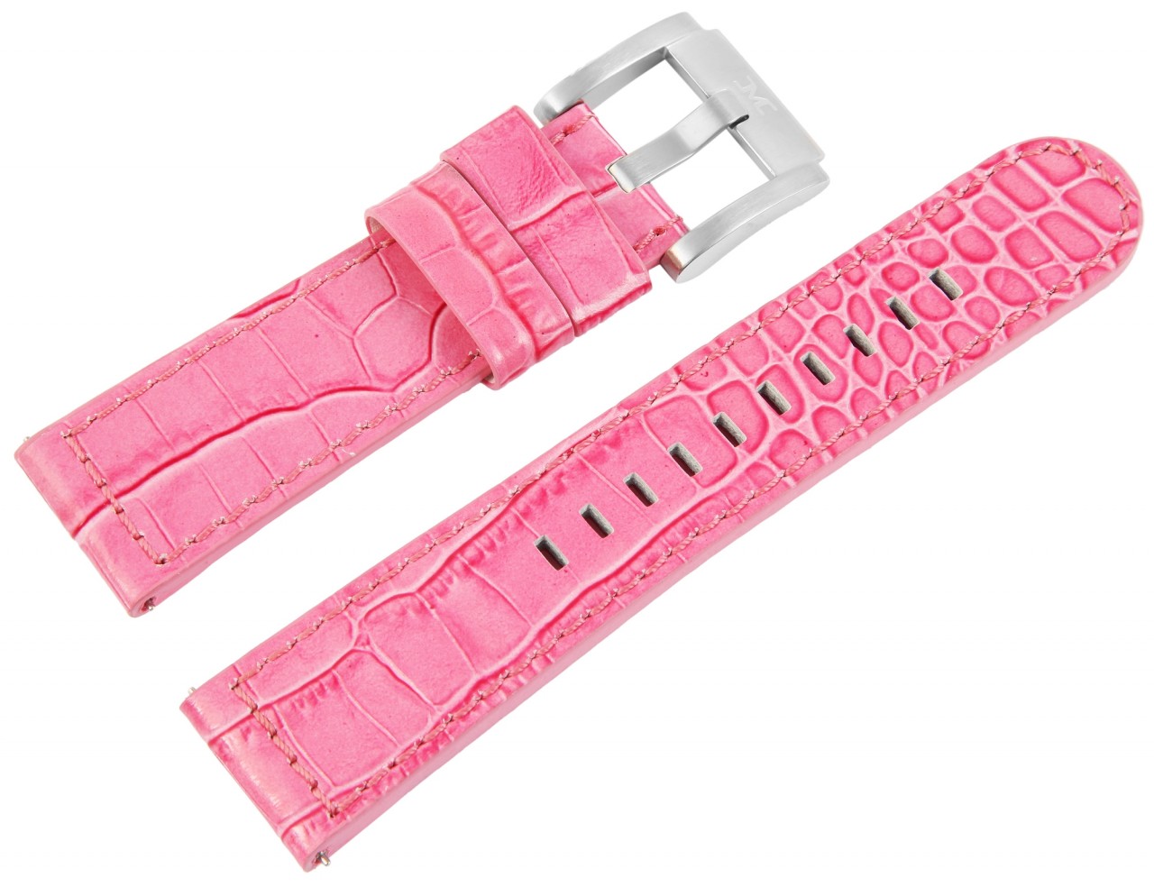 Pulseira de relógio rosa em couro genuíno. 22 mm.
