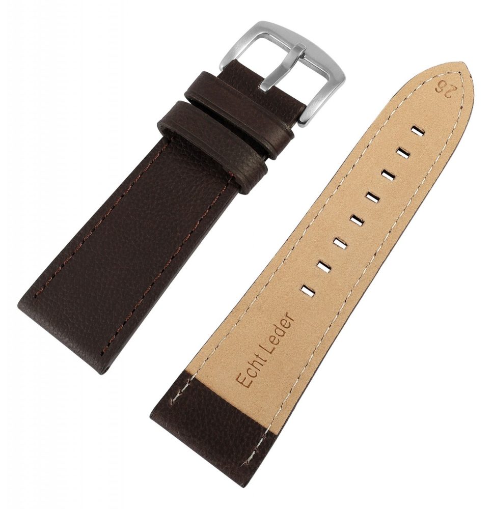 Mestre Artesão® Bracelete de Relógio em Couro Genuíno Muito Macia Castanho Escuro 24mm