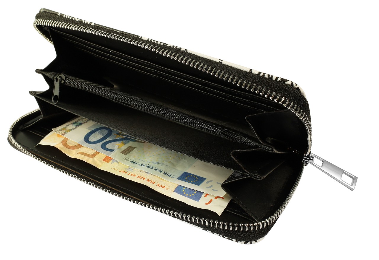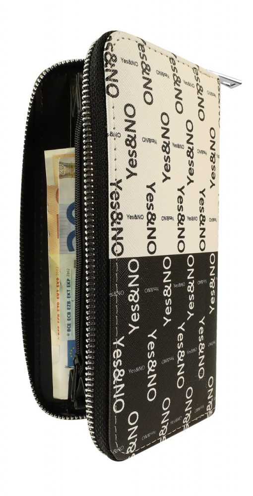 Esta carteira está disponível em inúmeras combinações de cores e impressiona pelo seu design especial. A inscrição “Sim e Não” chama a atenção visualmente. O acabamento de alta qualidade da imitação de couro torna esta carteira particularmente durável, resistente e fácil de cuidar. Com um tamanho de 10 x 19 x 2,8 cm, esta carteira combina funcionalidade e estética de forma harmoniosa. O compartimento principal fecha com zíper. Isso significa que os objetos de valor são mantidos protegidos. A carteira possui 3 compartimentos para notas, 1 compartimento para moedas com fecho, 8 compartimentos para cartões de crédito e 2 bolsos deslizantes. Com seu arranjo estruturado e design moderno, esta carteira é uma ótima companheira para o dia a dia.