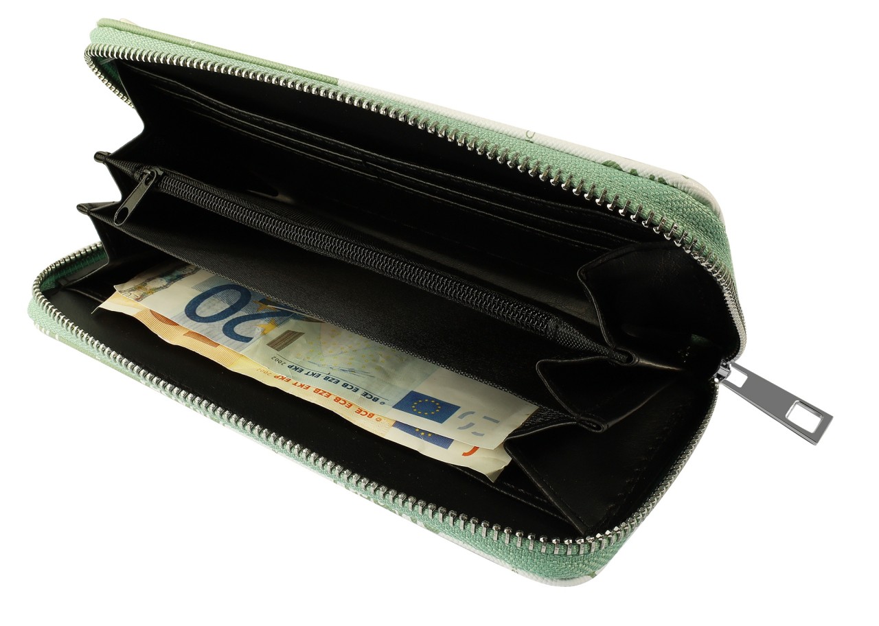 Esta carteira está disponível em inúmeras combinações de cores e impressiona pelo seu design especial. A inscrição “Sim e Não” chama a atenção visualmente. O acabamento de alta qualidade da imitação de couro torna esta carteira particularmente durável, resistente e fácil de cuidar. Com um tamanho de 10 x 19 x 2,8 cm, esta carteira combina funcionalidade e estética de forma harmoniosa. O compartimento principal fecha com zíper. Isso significa que os objetos de valor são mantidos protegidos. A carteira possui 3 compartimentos para notas, 1 compartimento para moedas com fecho, 8 compartimentos para cartões de crédito e 2 bolsos deslizantes. Com seu arranjo estruturado e design moderno, esta carteira é uma ótima companheira para o dia a dia.