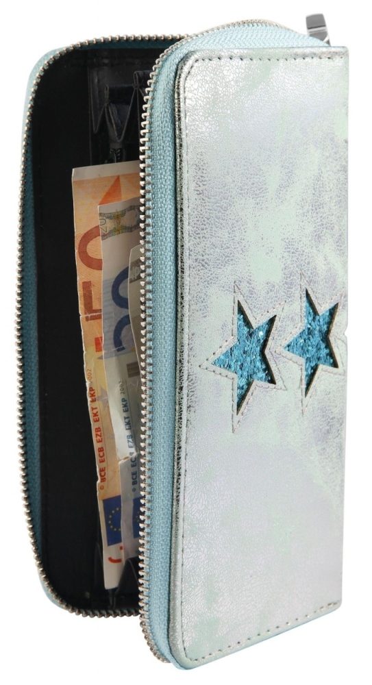 A carteira de senhora da marca Cham Cham é feita de imitação de pele em formato horizontal e tem um efeito metálico moderno com finas partículas de brilho em forma de estrela. As costuras no exterior e no interior da carteira garantem uma boa durabilidade e estabilidade. A carteira é uma verdadeira poupança de espaço e oferece muito espaço de armazenamento para todos os seus documentos importantes. É uma fiel companheira de viagem e, ao mesmo tempo, está super na moda. A carteira está dividida em 8 compartimentos para cartões de crédito, 3 compartimentos para notas, 1 compartimento para moedas com fecho de correr e 2 compartimentos de encaixe. O tamanho da carteira vazia é de 10 cm de comprimento, 19 cm de largura e 3 cm de espessura. Graças à sua disposição organizada e ao seu design elegante, esta carteira é a companhia perfeita para muitas ocasiões e eventos.