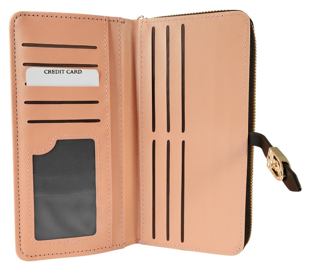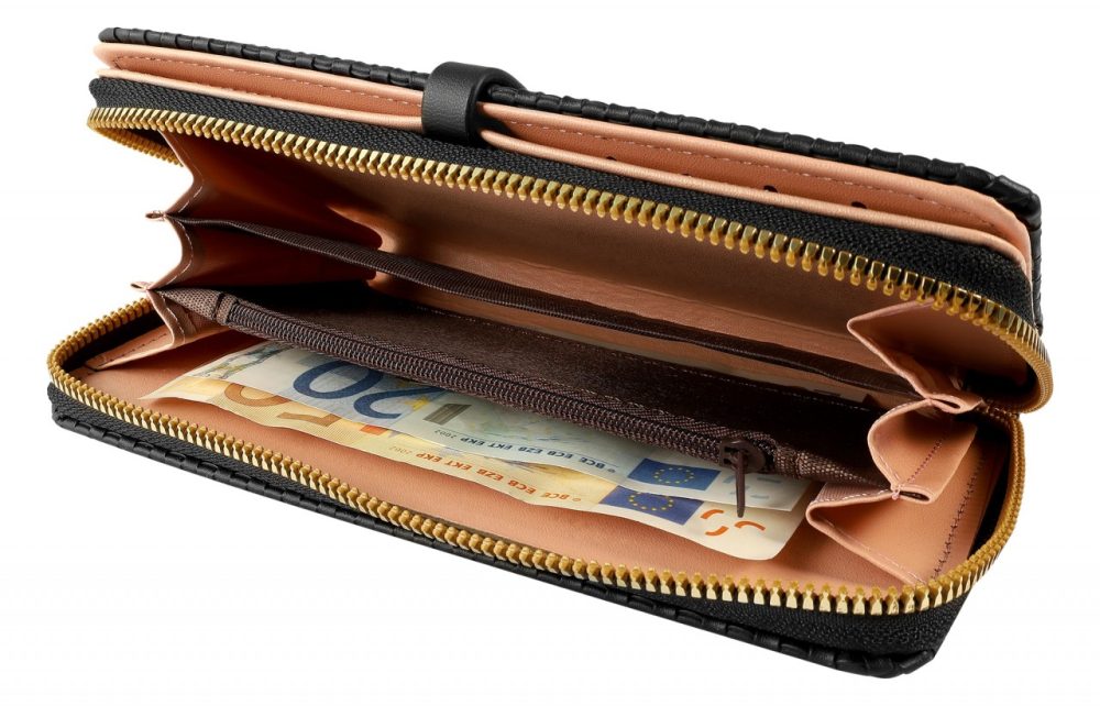 A nossa carteira moderna com design em tecido, fabricada num prático formato de paisagem em imitação de pele, está disponível em diferentes cores e impressiona com um tamanho de 10 x 19 x 3,5 cm. O compartimento principal para notas e moedas pode ser aberto e fechado de forma cómoda e segura com um fecho de correr, garantindo uma arrumação organizada das finanças. O pormenor especial da carteira é a aba engenhosa, que é fixada com um botão de pressão resistente. Por detrás desta aba, encontra-se um interior bem pensado com 10 ranhuras para cartões de crédito, um compartimento transparente para documentos de identificação e três práticos bolsos para notas. Estes pormenores bem pensados permitem organizar os cartões e os documentos de identificação de forma clara e elegante.