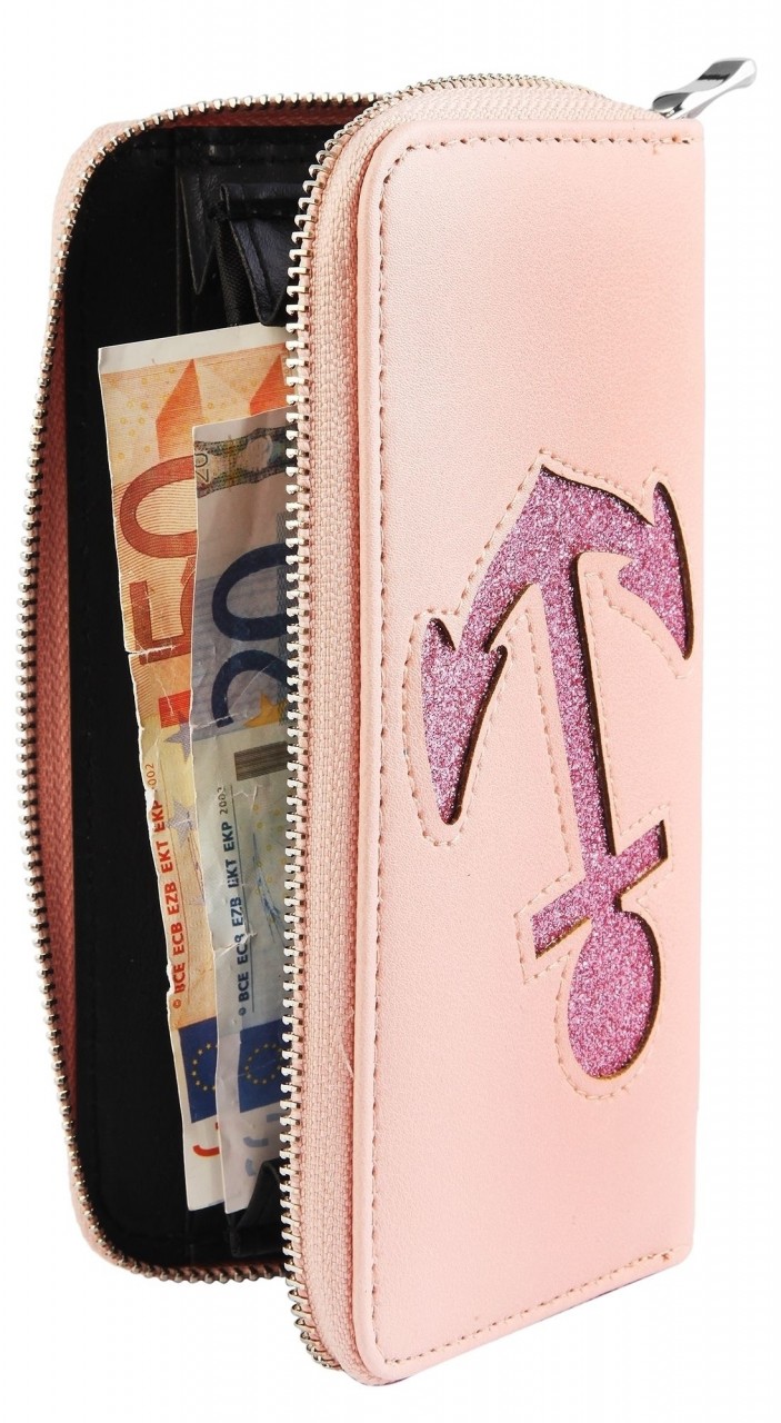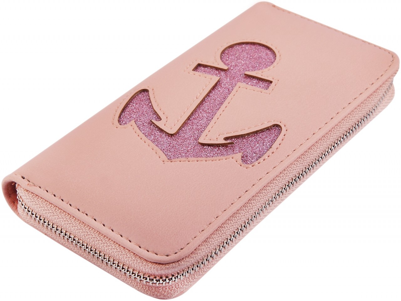 A carteira marítima em formato de paisagem é feita de imitação de couro. O forro interior também é feito de imitação de pele e parcialmente de poliéster. A carteira tem 3 compartimentos para notas, um pequeno compartimento para trocos com fecho de correr, 8 ranhuras para cartões de crédito e 2 bolsos para notas. A carteira não só chama a atenção, como também economiza espaço. Tudo pode ser guardado de forma segura com um fecho de correr no exterior. Quando não está cheia, a carteira mede 10 cm de comprimento, 19 cm de largura e 3 cm de espessura. Decorada com uma âncora, a carteira é o acessório ideal para uma visita à praia.