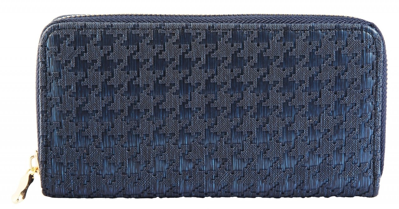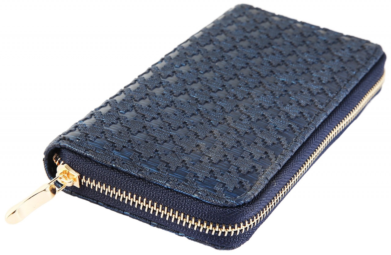 Carteira de senhora em imitação de pele. A carteira de paisagem tem 19 cm de largura e 10 cm de altura. A cor é . A carteira de couro genuíno é fechada com um fecho de correr. Tem 5 compartimentos para notas, um pequeno compartimento para trocos e 8 ranhuras para cartões de crédito.