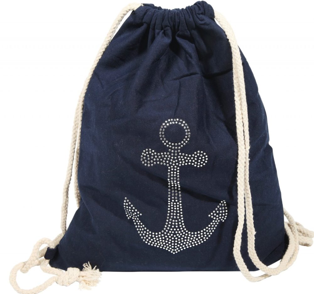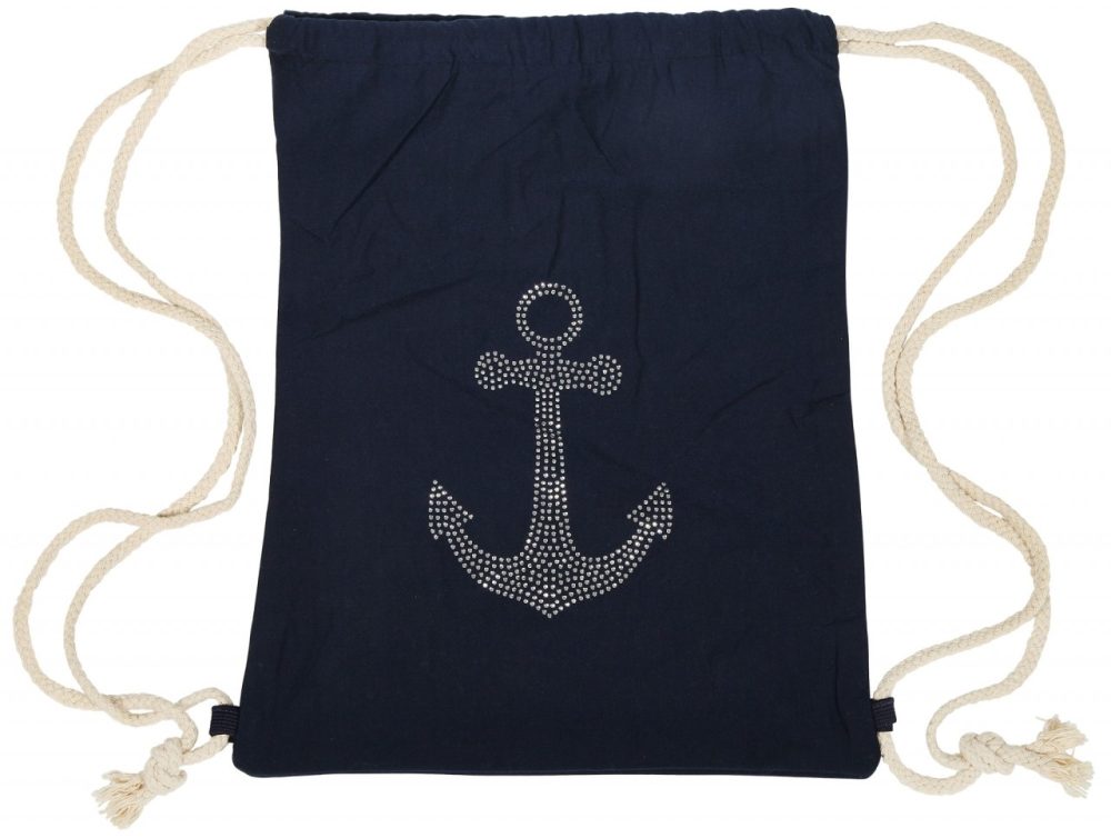 A bolsa de ginástica marítima é feita de tecido e pode ser facilmente aberta e fechada com dois cordões trançados, bastando puxar. A frente da bolsa de ginástica é decorada com uma âncora cravejada de brilhantes. Isso significa que definitivamente não passará despercebido e se tornará um destaque absoluto. Além disso, a bolsa é muito durável e oferece muito espaço de armazenamento. Seja para praticar desportos, para a escola ou para o dia a dia esta bolsa de ginástica hipster é a companheira ideal para inúmeras ocasiões. O tamanho tem 40 cm de comprimento, 32 cm de largura e 3 mm de espessura.