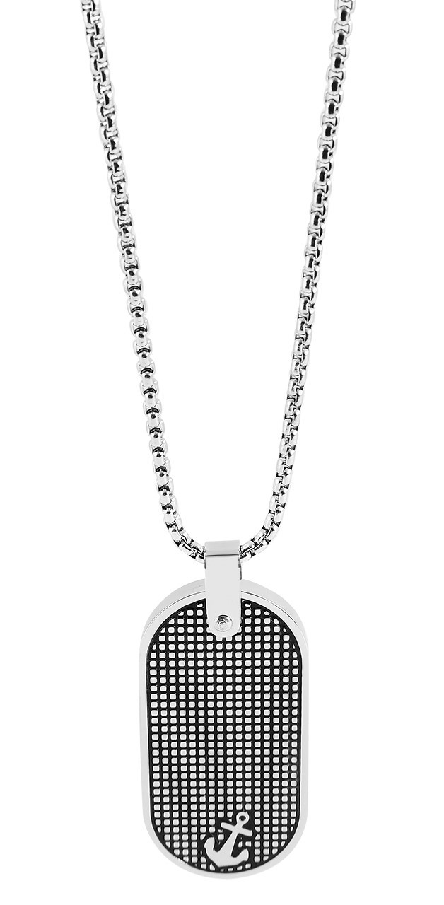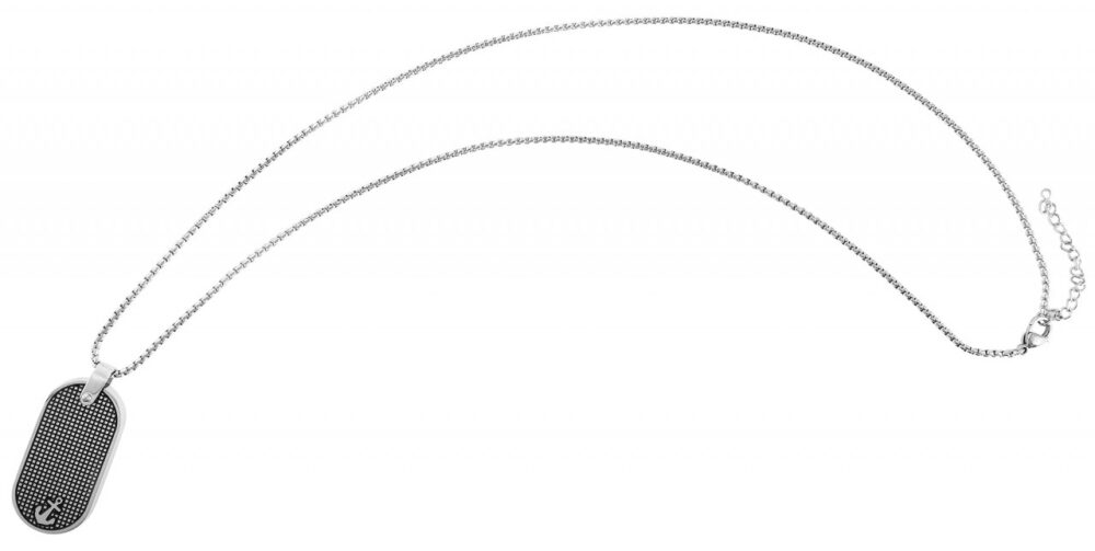 Fabricada em aço inoxidável de alta qualidade, a corrente veneziana tem comprimento de 60 cm e extensão adicional de 5 cm, o que garante um ajuste perfeito. Com espessura de 2 mm, a corrente é um excelente acessório para o uso diário. O medalhão medindo 4 x 2 cm (comprimento total incluindo ilhó 4,4 cm) é o destaque desta joia. Na frente do pingente há um padrão de diamante e uma pequena âncora detalhada, que confere à corrente um caráter marítimo. A parte de trás do medalhão oferece espaço suficiente para gravação pessoal. O pingente é móvel na corrente, mas não removível.