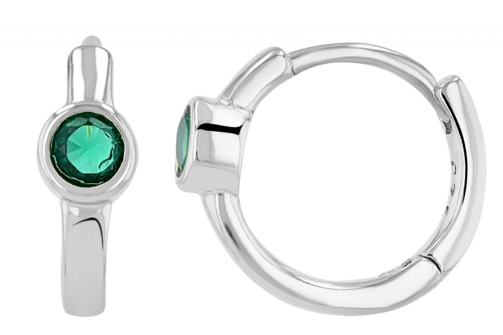 Argolas "Mexine" Prateadas e Verdes em Prata de Lei 925 Banhada a Ródio com Zircónias 0688