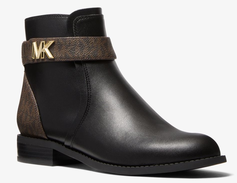 Completo com salto baixo, este par clássico é definido por uma tira contrastante no tornozelo detalhada com nossas iniciais “MK”.