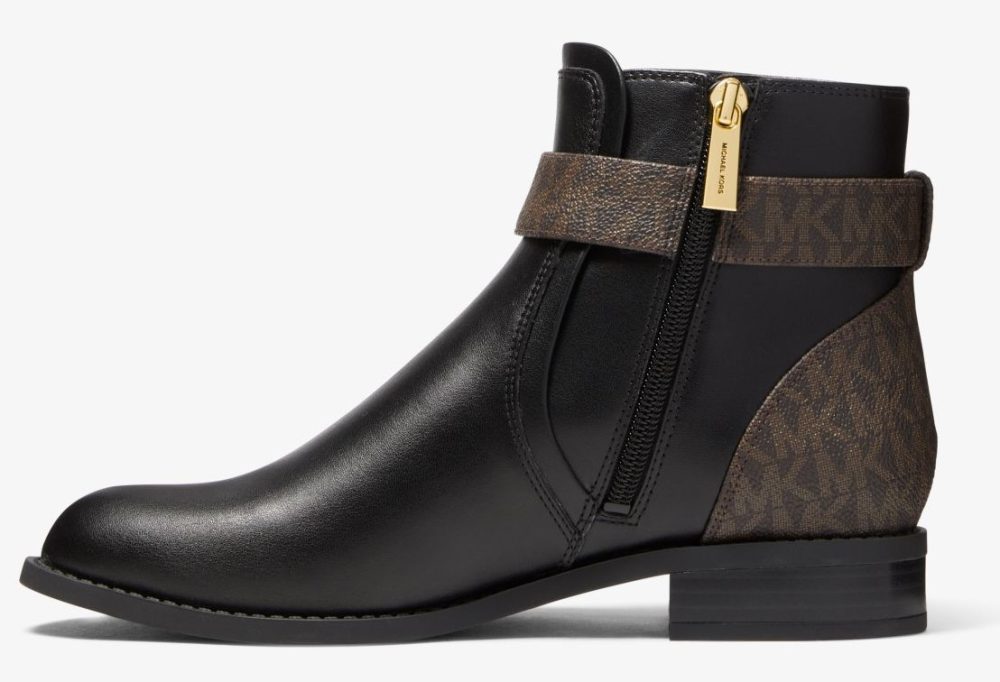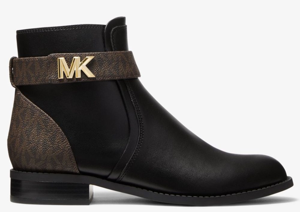 Completo com salto baixo, este par clássico é definido por uma tira contrastante no tornozelo detalhada com nossas iniciais “MK”.