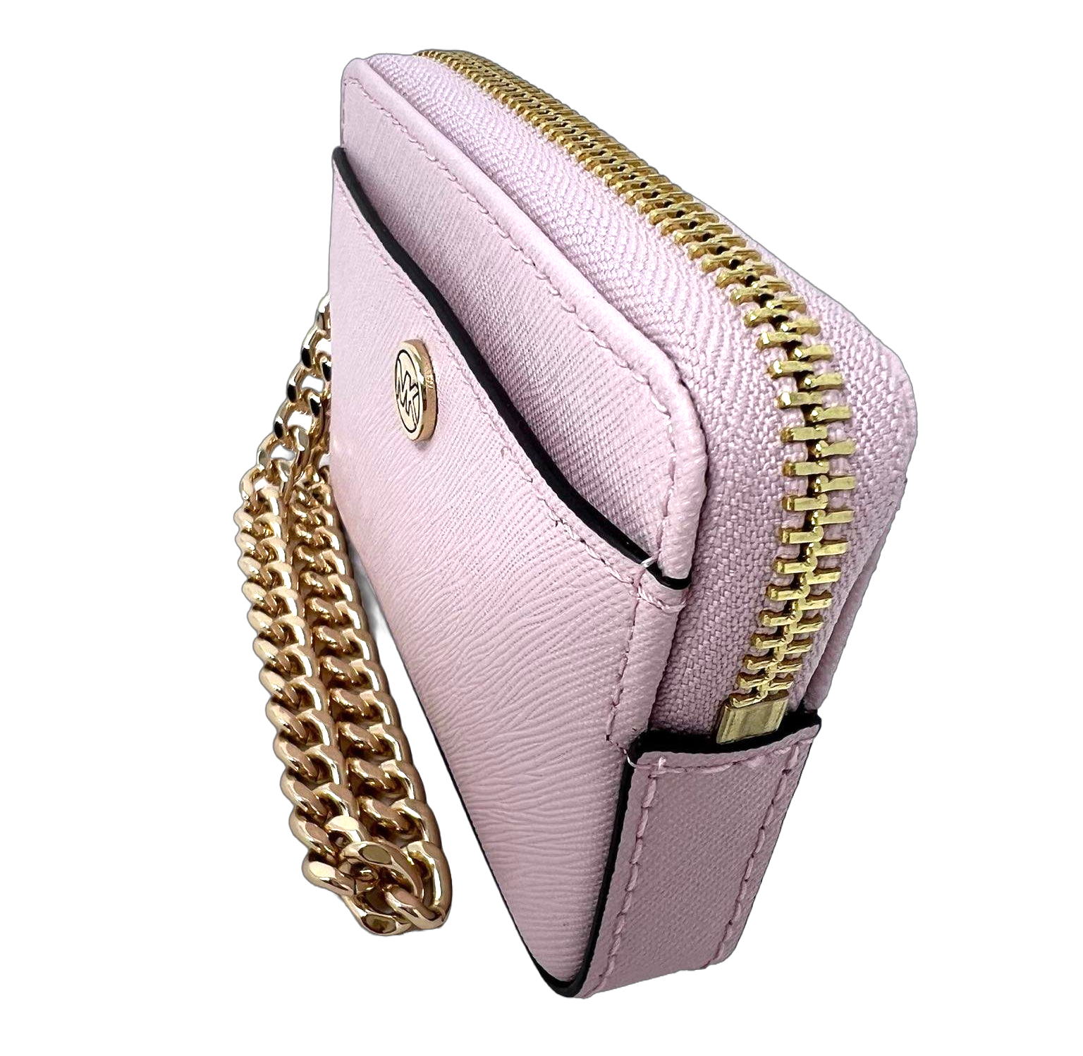 Porta Moedas Pele Michael Kors , com pulseira dourada fixa para andar no braço.