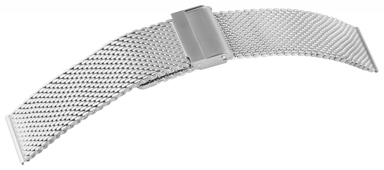 A pulseira do relógio milanês prateado é feita em aço inoxidável e pode ser aberta e fechada com um fecho de gancho em aço inoxidável prateado. A pulseira de substituição é muito confortável de usar graças ao seu design especial e pode ser perfeitamente ajustada a qualquer pulso graças ao ajuste fino. O comprimento total da pulseira do relógio é de 20 cm. A pulseira milanesa está disponível em larguras de 18 mm, 20 mm, 22 mm e 24 mm. A alça é reta e, portanto, compatível com todos os relógios. A pulseira milanesa torna cada relógio um destaque visual.