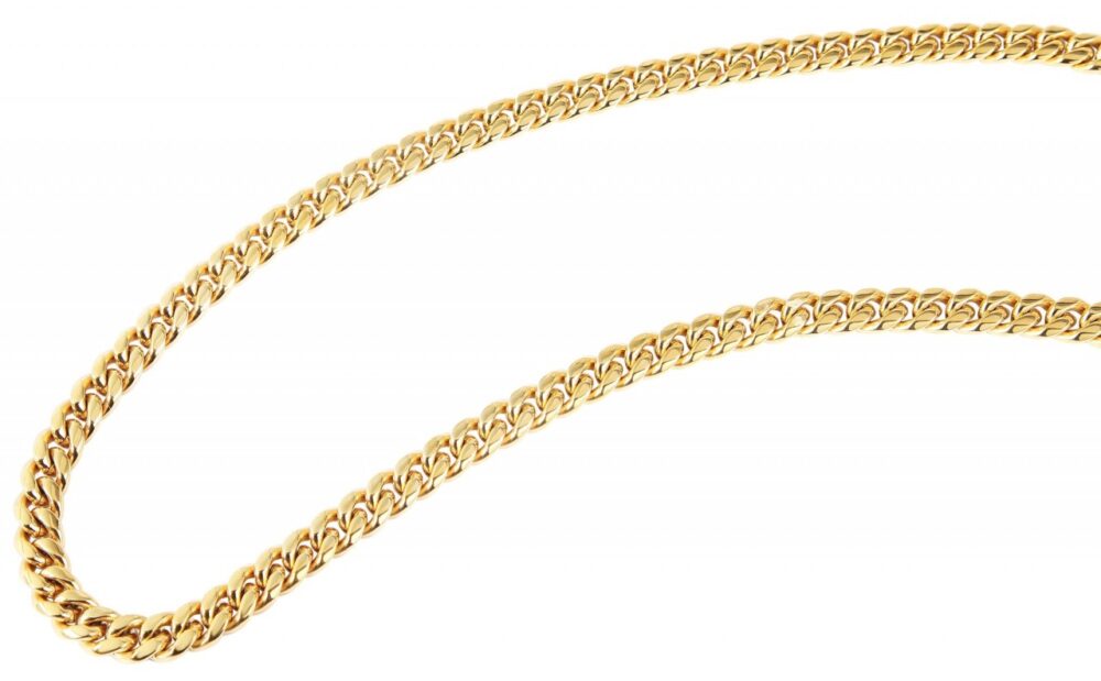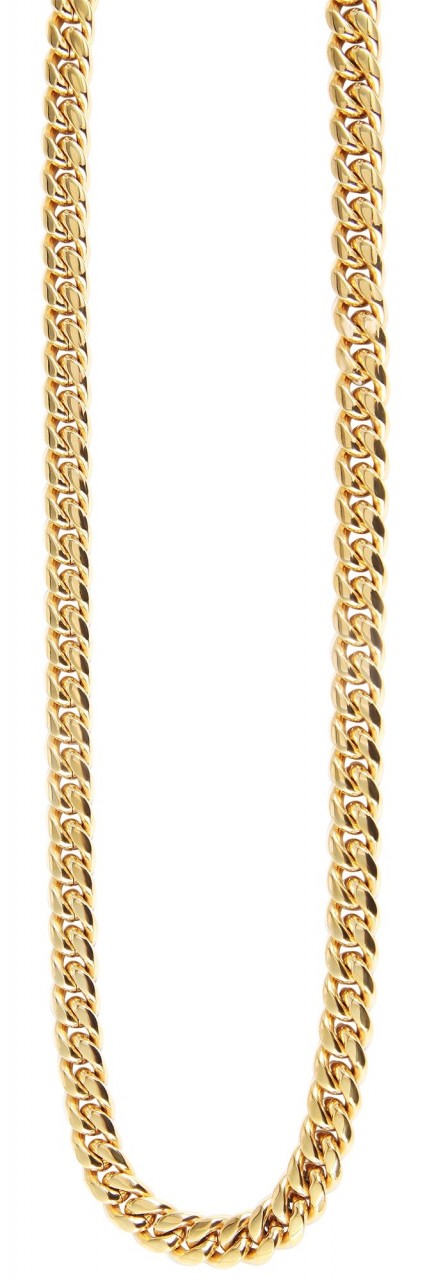 A corrente dourada da marca Akzent é feita de aço inoxidável e está disponível em diferentes comprimentos. O seu aspeto sólido torna-a absolutamente apelativa e pode também ser combinada com um pendente, conforme desejado. Os elos planos da corrente são típicos da corrente curb e proporcionam a superfície lisa caraterística. O fecho de lagosta clássico é utilizado para prender a corrente, de modo a que esta se ajuste bem ao pescoço e seja confortável de usar. Esta peça de joalharia tornar-se-á rapidamente indispensável, uma vez que é uma peça que chama a atenção e que pode ser combinada para várias ocasiões.
