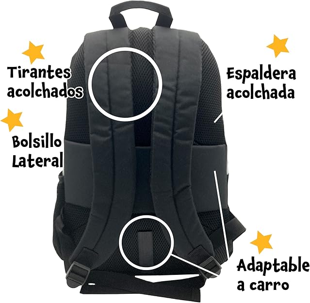 • Tamanhos diferentes: Na ToyBags, sabemos o quanto é importante ter espaço suficiente para que o seu filho leve na sua mochila todos os seus ponteiros e cadernos. É por isso que a nossa mochila tem dimensões de 44 x 30 x 20 cm, um tamanho ideal.