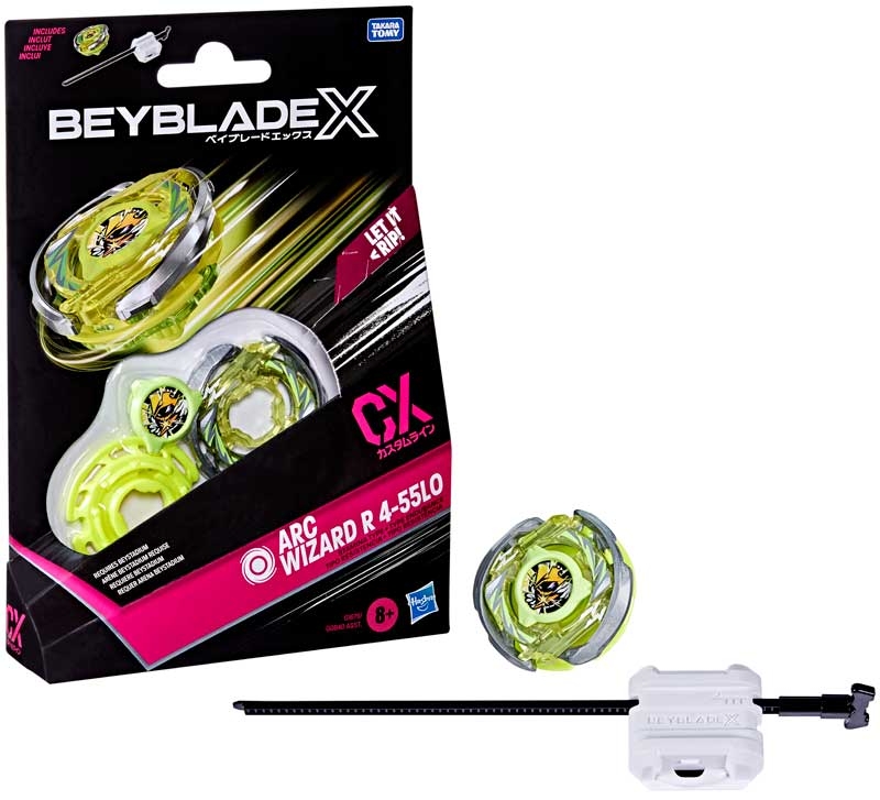 A série Beyblade X apresenta o Sistema de Engrenagens X-Celerator, que permite que os piões se encaixem no trilho da arena Beystadium, superacelerando-os e criando uma Corrida Extrema para colisões poderosas e explosões dramáticas. Personalize suas batalhas reconfigurando a lâmina, a catraca e o bit intercambiáveis com outros piões Beyblade X, vendidos separadamente, para criar um Bey único e imbatível.