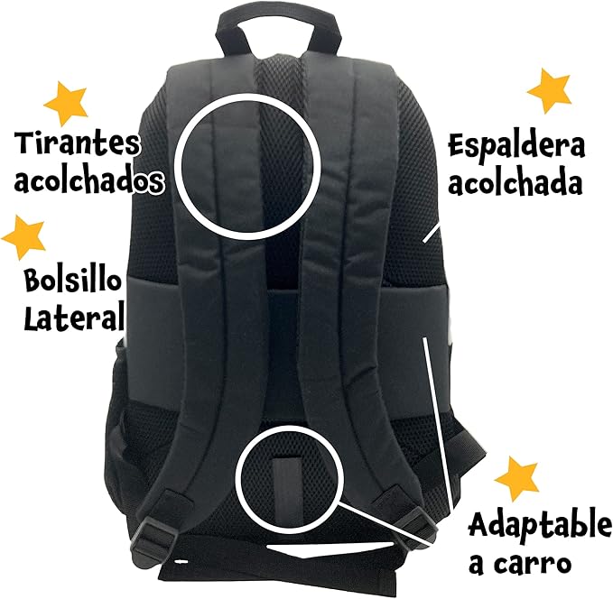 - Tamanhos diferentes: Na ToyBags, sabemos o quanto é importante ter espaço suficiente para que o seu filho leve na sua mochila todos os seus ponteiros e cadernos. É por isso que a nossa mochila tem dimensões de 44 x 30 x 20 cm, um tamanho ideal.