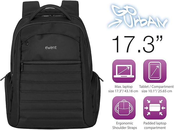 • A mochila para portátil urbano foi projetada para uso diário graças ao painel traseiro acolchoado, material repelente de água e ajustável