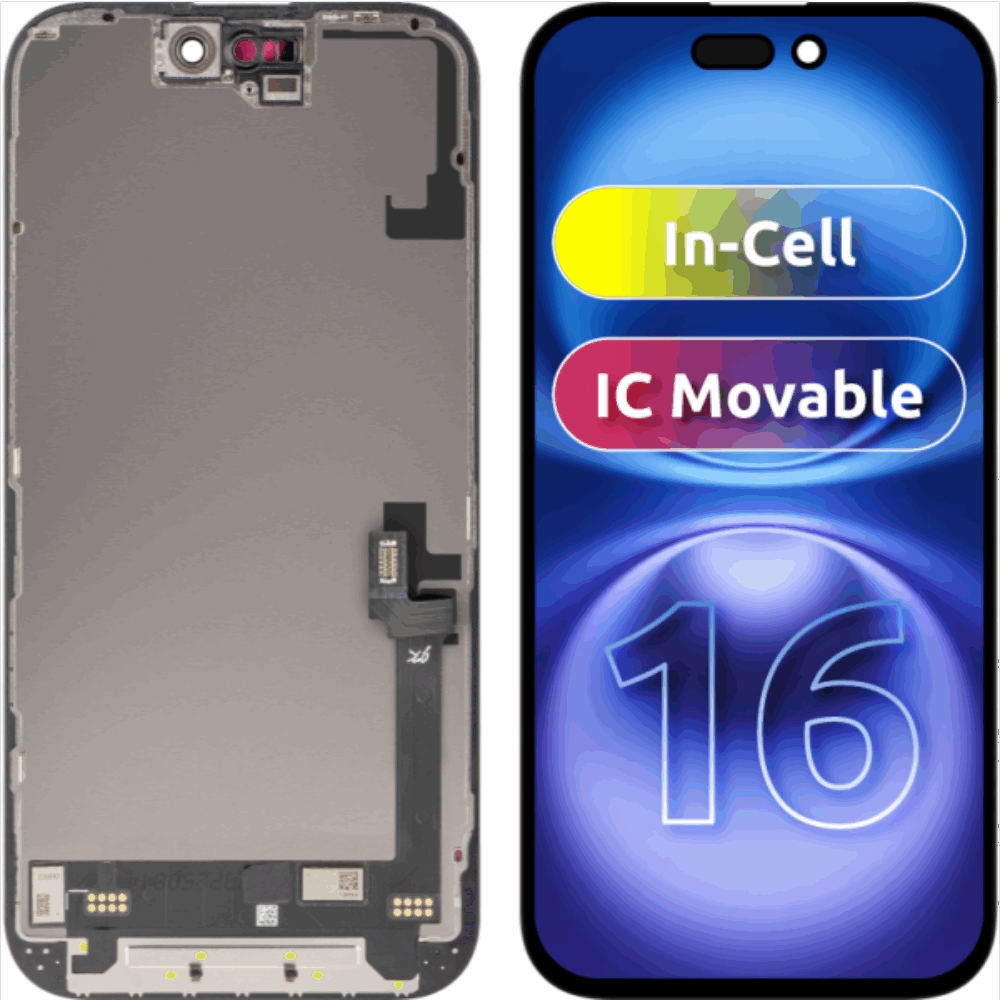 Módulo de tela LCD JK para Apple iPhone 16, versão In-Cell IC, preto