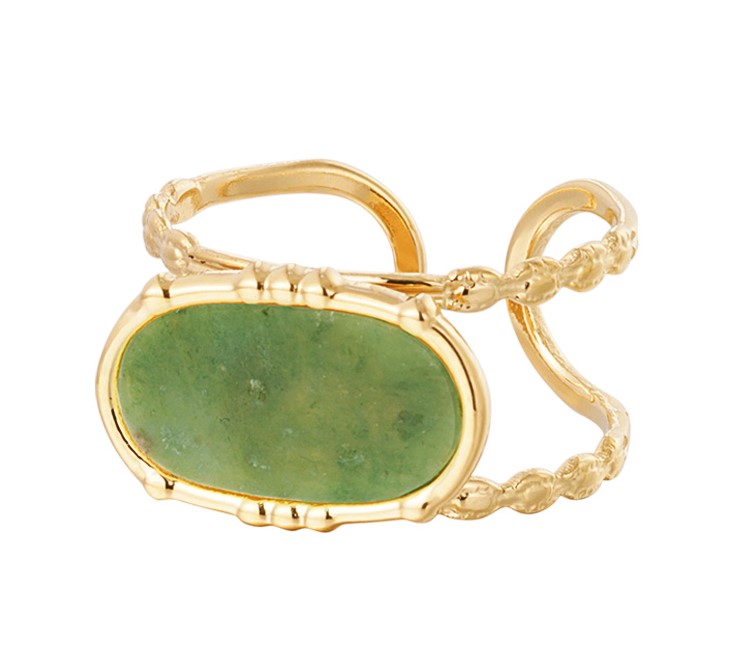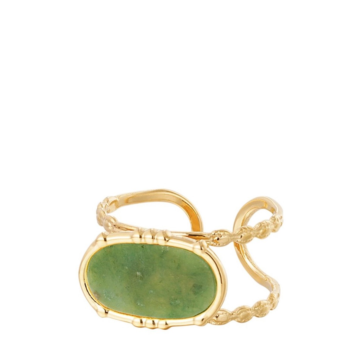 MonBijoux by Ophélia® Anel Clássico de Pedra Alongada Dourado/Verde RST7915