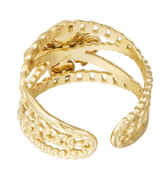 Anel MonBijoux by Ophélia® em dourado com pedra natural, feito em aço inoxidável resistente.