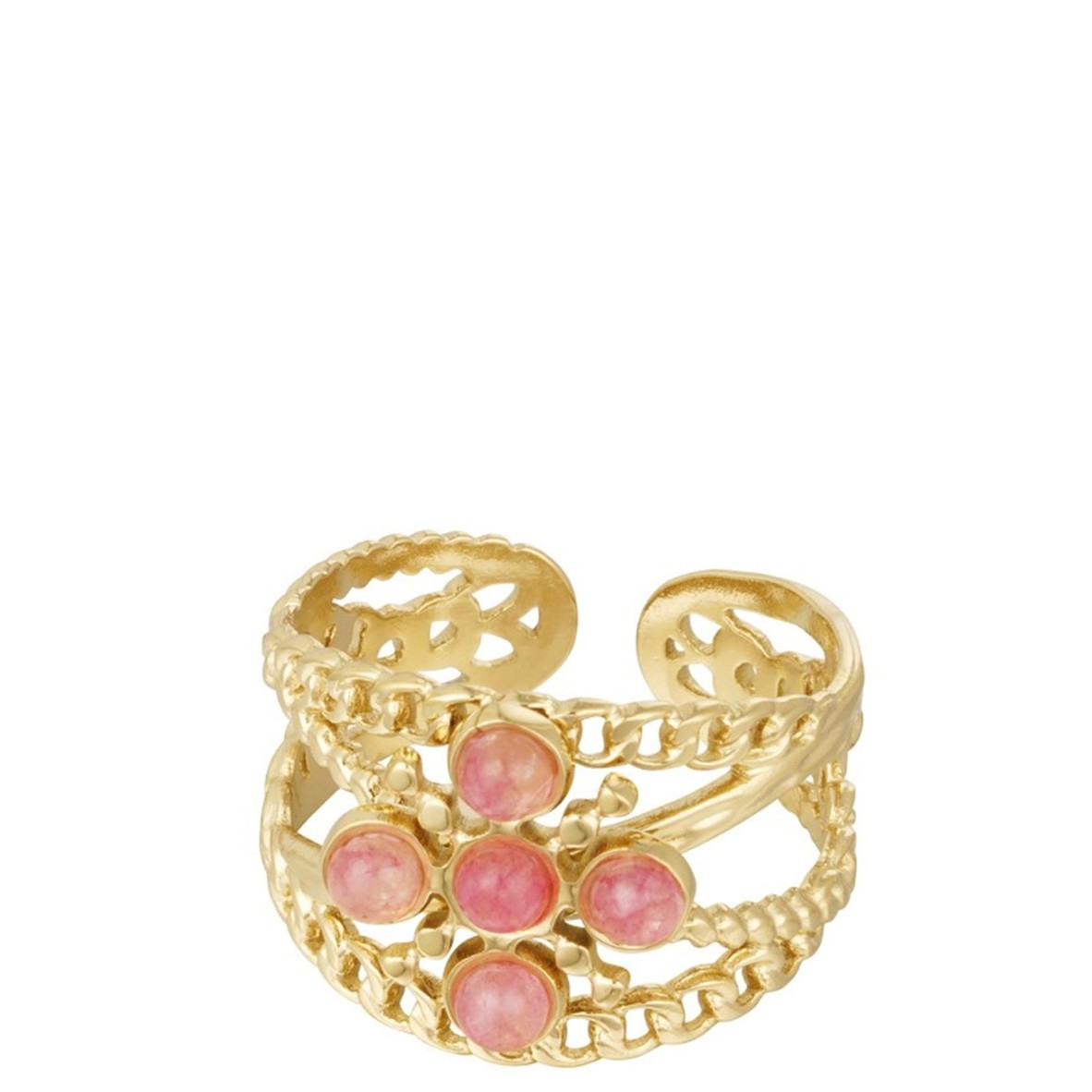 MonBijoux by Ophélia® Anel Cruzado com Pedras Naturais Rosa RST6536