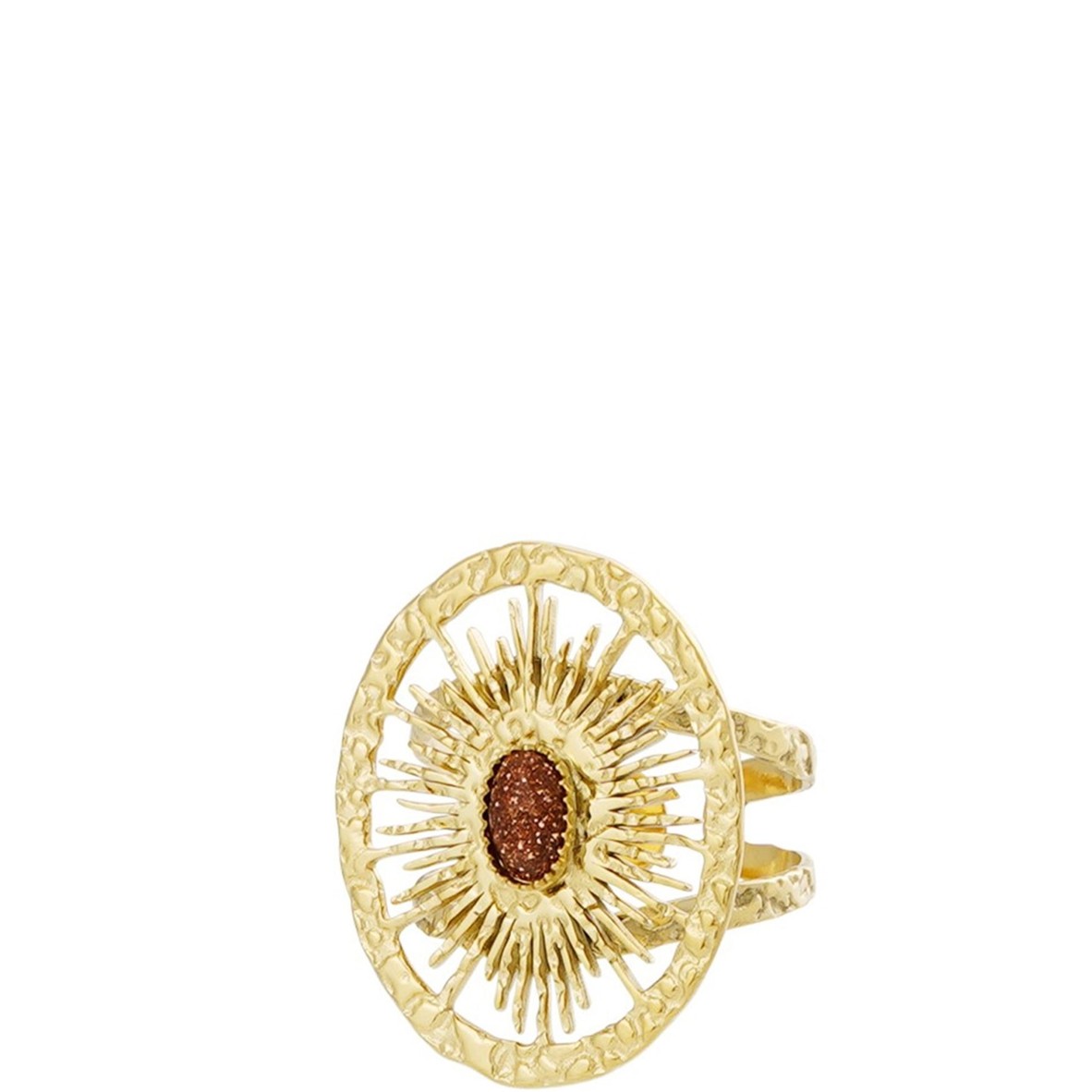 Anel MonBijoux by Ophélia® em dourado com pedra natural, feito em aço inoxidável resistente.