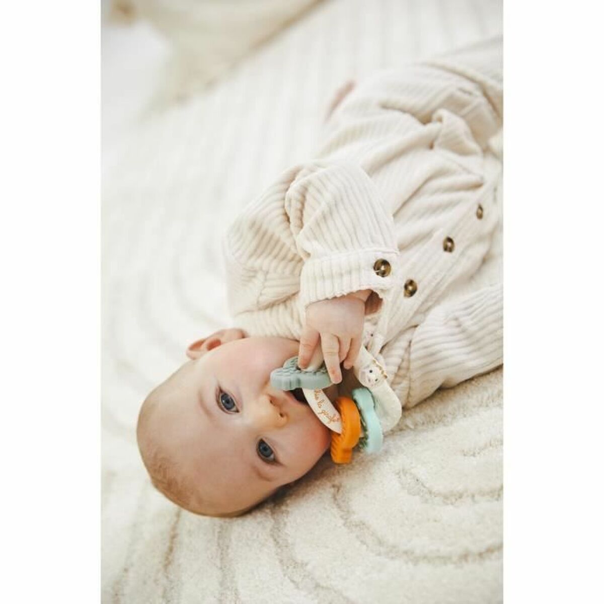 • Este mordedor clássico é feito de borracha 100% natural e oferece uma solução segura e ecológica para acalmar as gengivas do seu bebê. As três pequenas teclas têm cores e texturas únicas, que ajudam a estimular os sentidos do seu bebê e a desenvolver suas habilidades motoras orais.