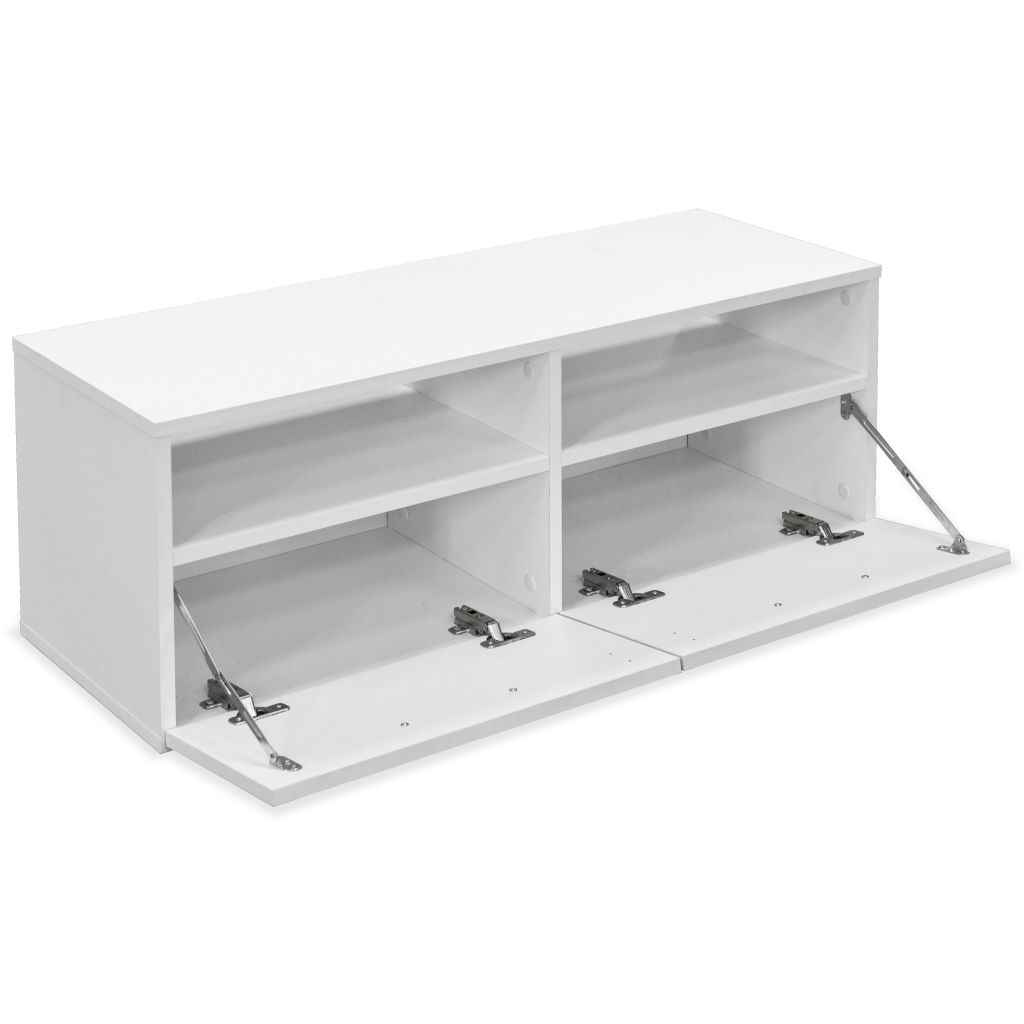 Os móveis HiFi são feitos de aglomerado com bordas em PVC e são estáveis e duráveis. Cada um possui duas prateleiras abertas e dois armários com portas que abrem para baixo, oferecendo um amplo espaço de arrumação para o seu leitor de DVDs, consola de jogos, recetor digital ou suportes de multimédia. Estes móveis de TV com um design liso serão um ótimo complemento para o seu quarto ou sala de estar. A montagem é fácil.