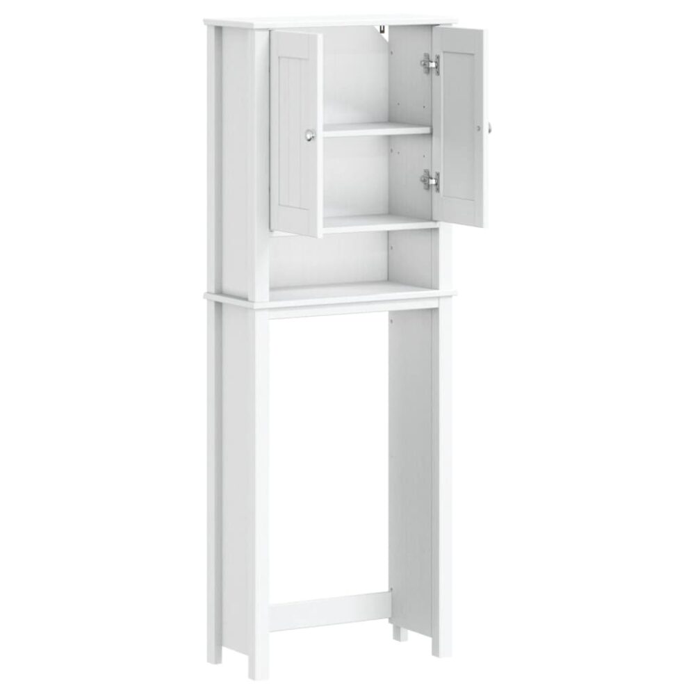 Maximize o espaço na sua casa de banho e conceda-lhe um aspeto arrumado e limpo com este móvel de arrumação em madeira para colocar sobre a sanita. Madeira de pinho maciça: a madeira de pinho maciça é um bonito material natural. A madeira de pinho possui um grão reto e os nós dão ao material o seu aspeto rústico.Amplo espaço de arrumação: o armário de arrumação para casa de banho apresenta 3 prateleiras que oferecem um amplo espaço para acomodar facilmente os seus artigos essenciais de higiene pessoal e de banho, tais como sabonetes, champô, pasta de dentes, etc.Design economizador de espaço: a estante de casa de banho foi concebida para ser colocada acima da sanita, pelo que se adequa bem a espaços limitados, sendo ideal para casas de banho mais pequenas.Fácil de limpar: o design de pintura UV proporciona uma superfície suave e facilita a limpeza. O móvel de casa de banho é resistente à água, o que garante uma utilização duradoura. Atenção:Para evitar que o produto se vire, deve utilizar um dispositivo de fixação para a parede (não fornecido).